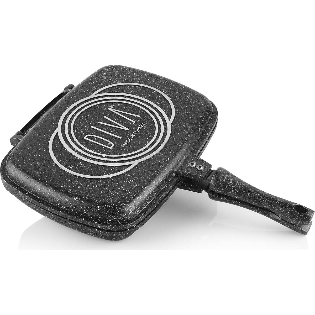Schafer Diva Famos Çift Taraflı Yanmaz Yapışmaz Kare Grill Tava – 32 cm – Gri