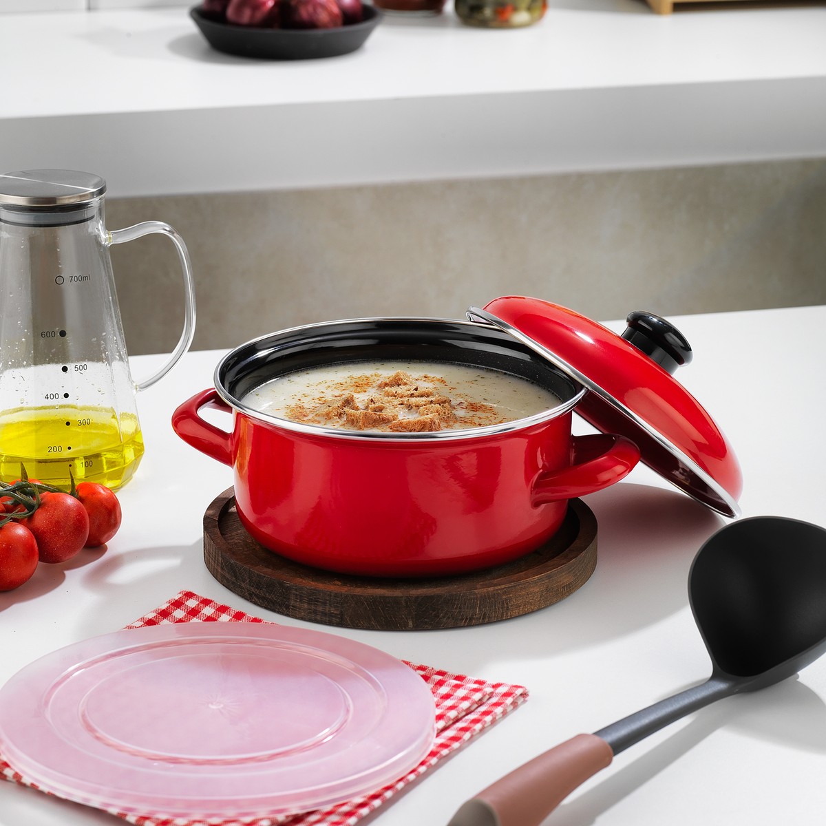 Schafer Komfort Pişir Sakla Emaye Tencere 18 Cm-Kırmızı