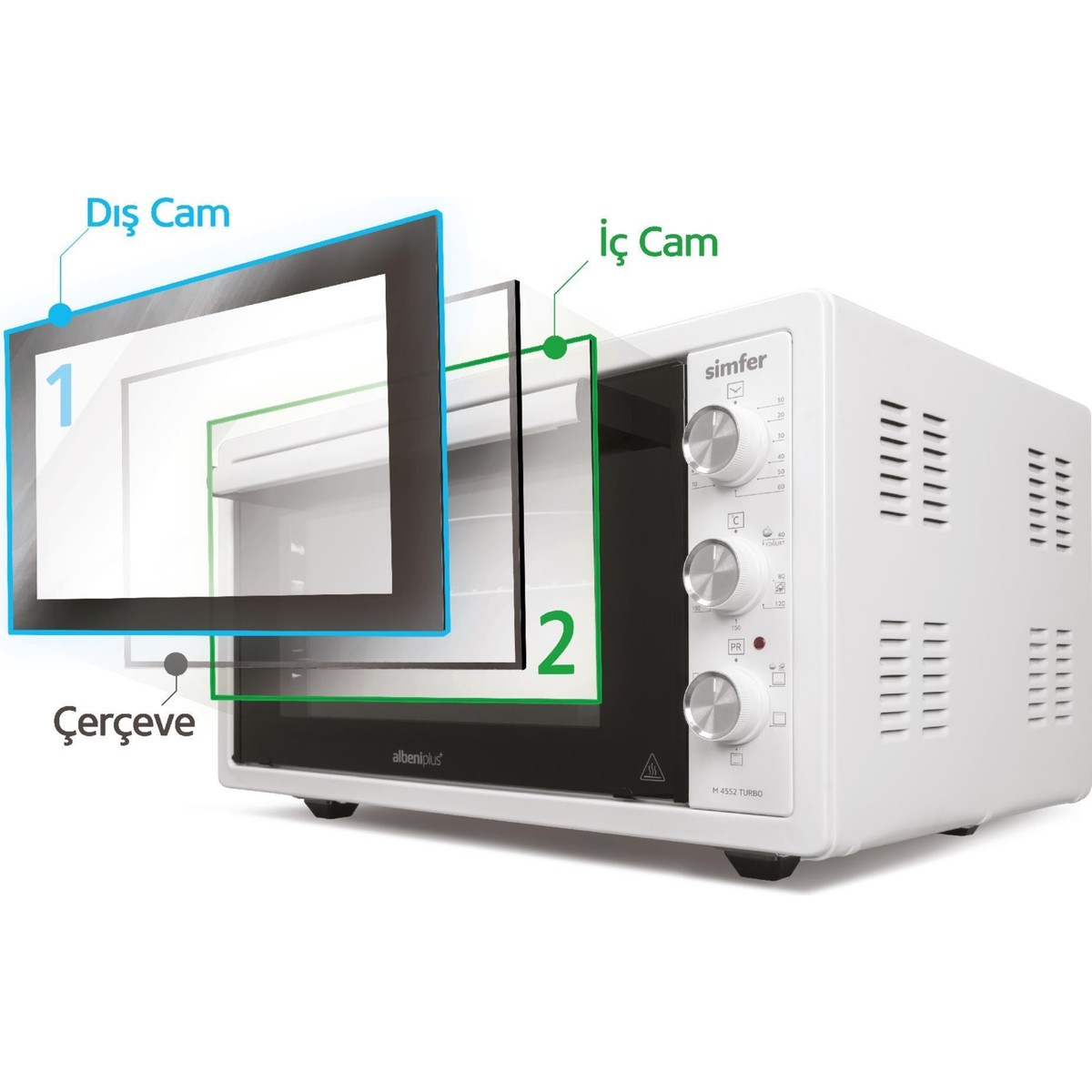 Simfer 4552 Yoğurt Yapma Fonksiyonlu Çift Camlı Kapak Turbo Beyaz 45 Lt Midi Fırın