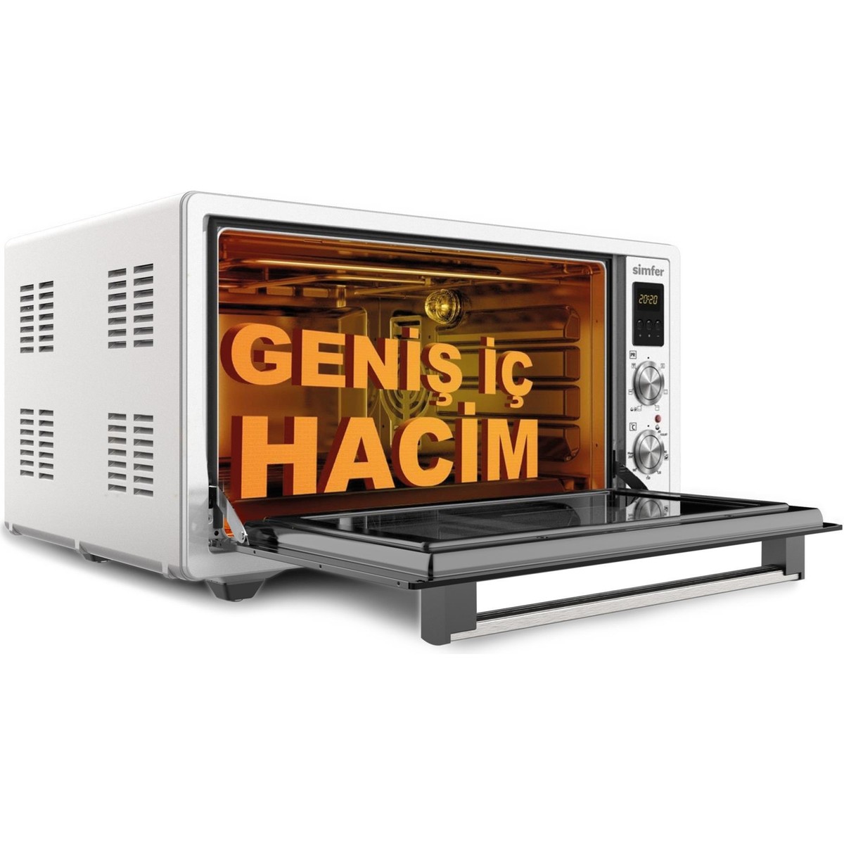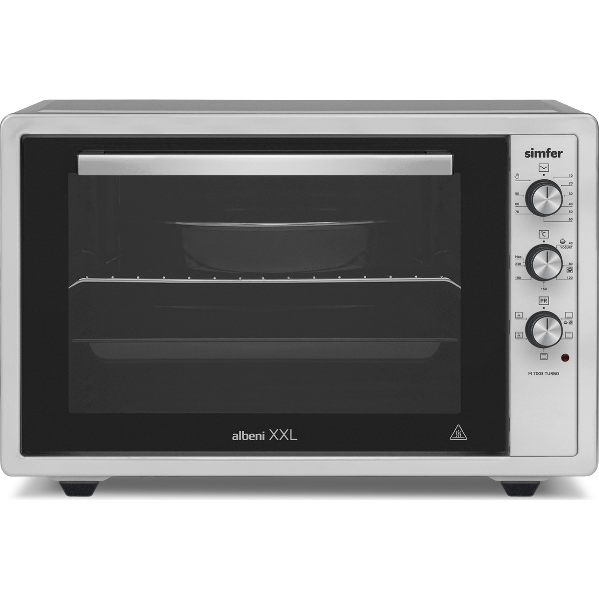 Simfer 7003 Yoğurt Yapma Fonksiyonlu Çift Camlı Kapak Turbo İnox Gri 70 Lt Midi Fırın