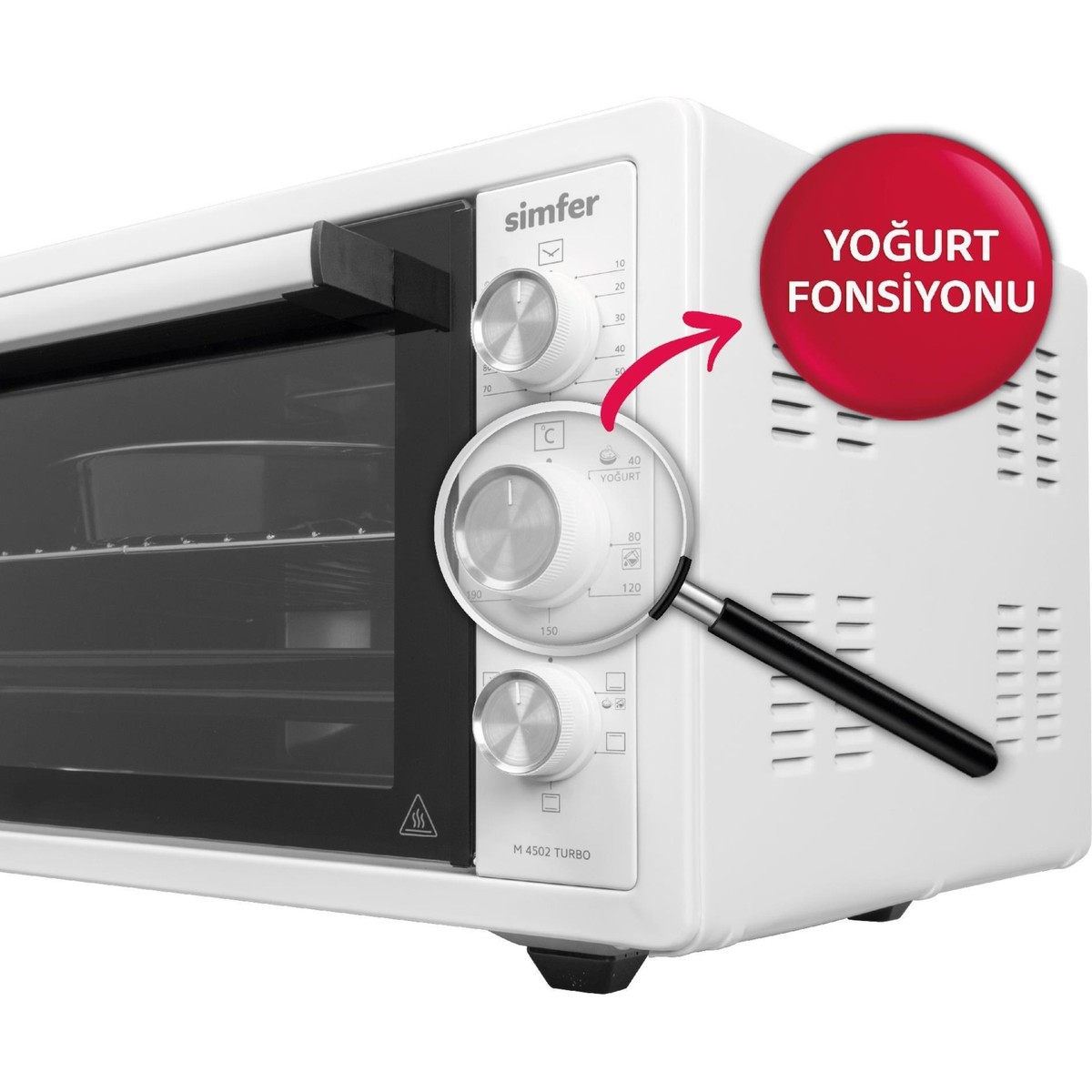 • Pratik kullanım özellikleri, estetik retro tasarım ve kolay temizlenebilir iç yüzey, Simfer midi mini fırının kullanımını kolaylaştırır.