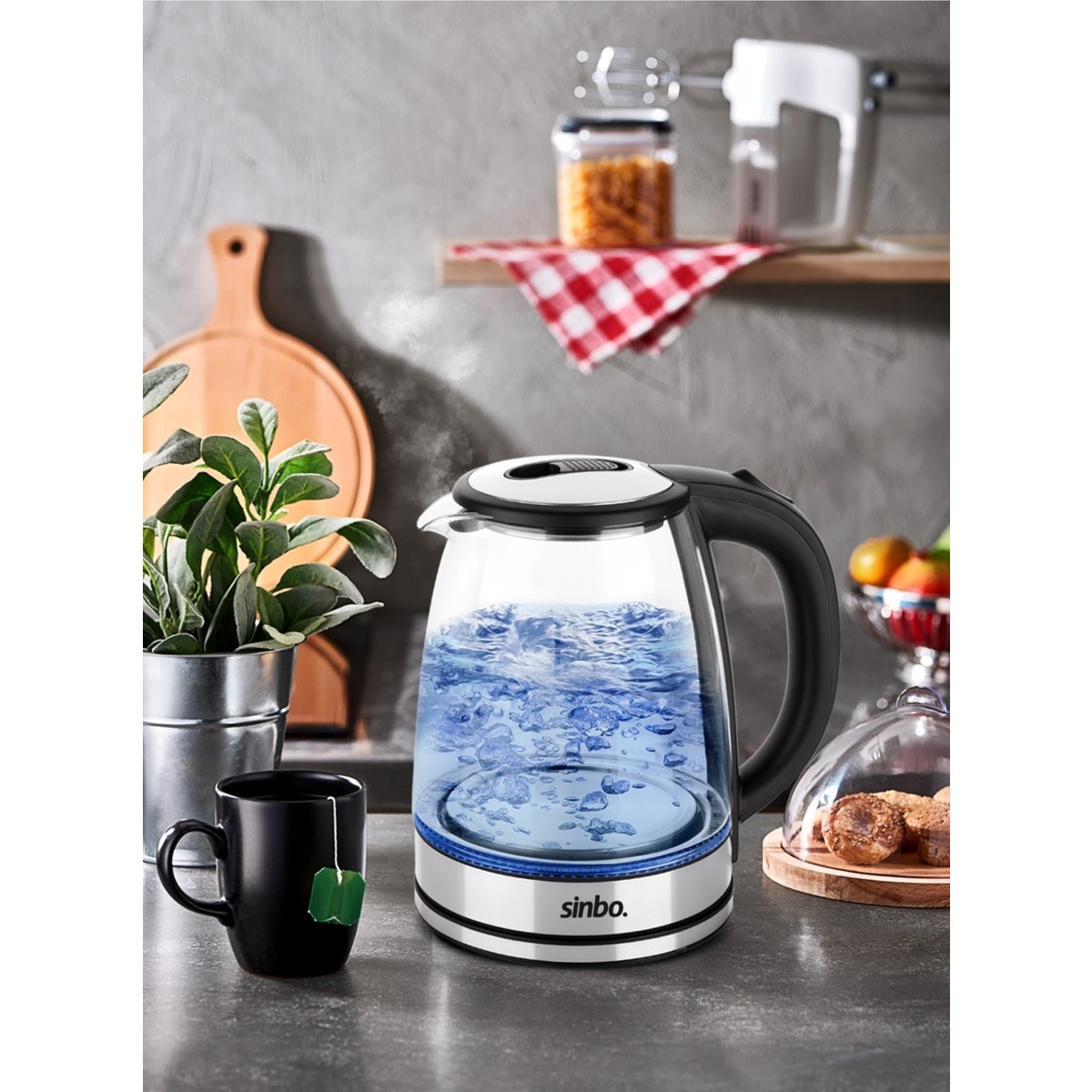 Sinbo 1,8 Litre Cam Su Isıtıcı – Paslanmaz Çelik Gizli Rezistans, Otomatik Kapanma Özelliği, Mavi LED Işıklı, Enerji Tasarruflu