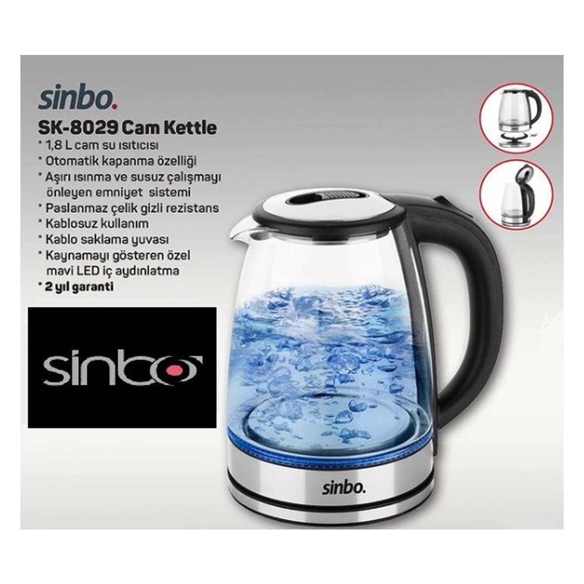 Sinbo SK-8029 Cam Kettle — şık tasarımı ve pratik özellikleri ile mutfaklarınıza modern bir dokunuş katıyor. 1,8 litre su hacmi ile hızlıca su kaynatma imkanı sunarken, güvenli kullanım için otomatik kapanma özelliği ile donatılmıştır.