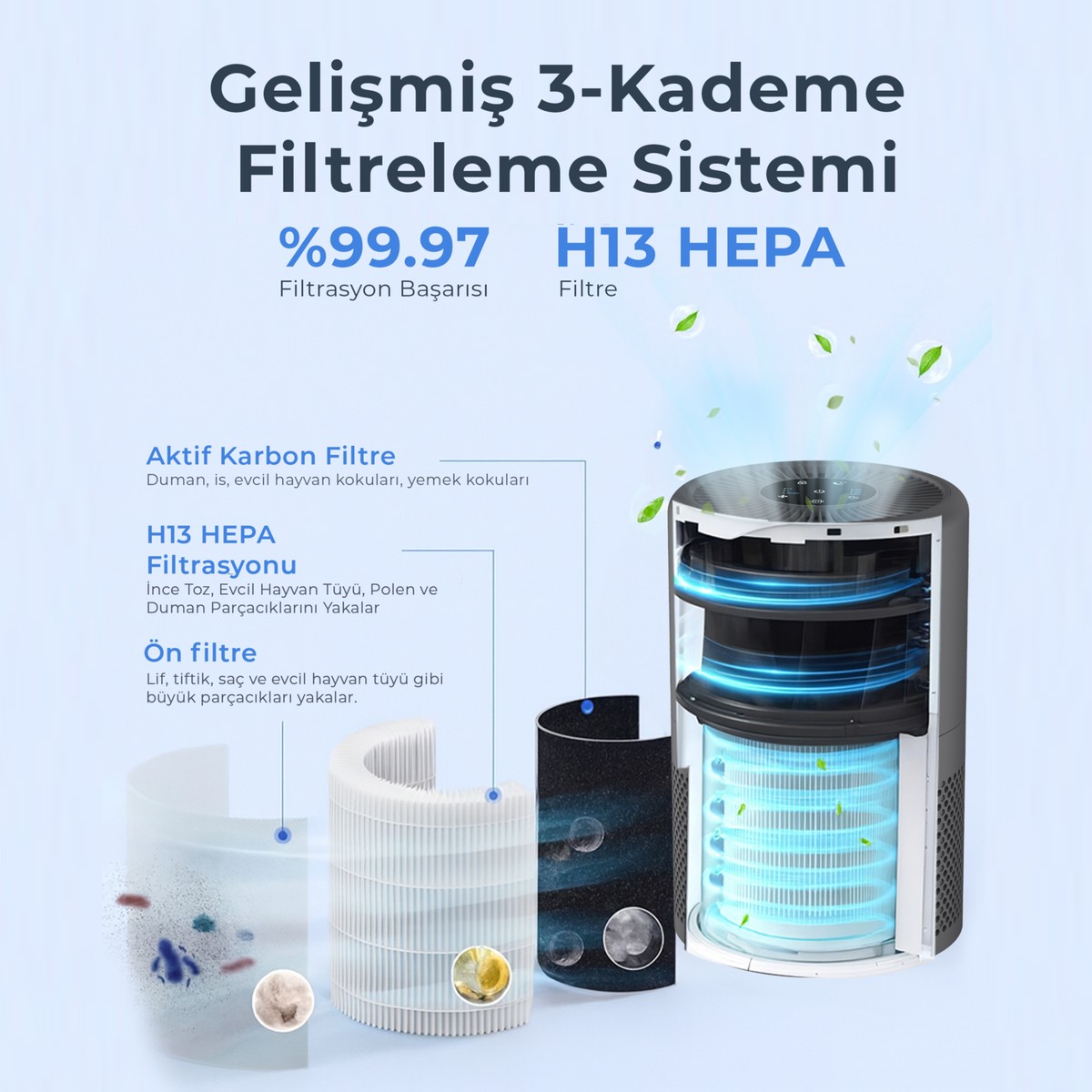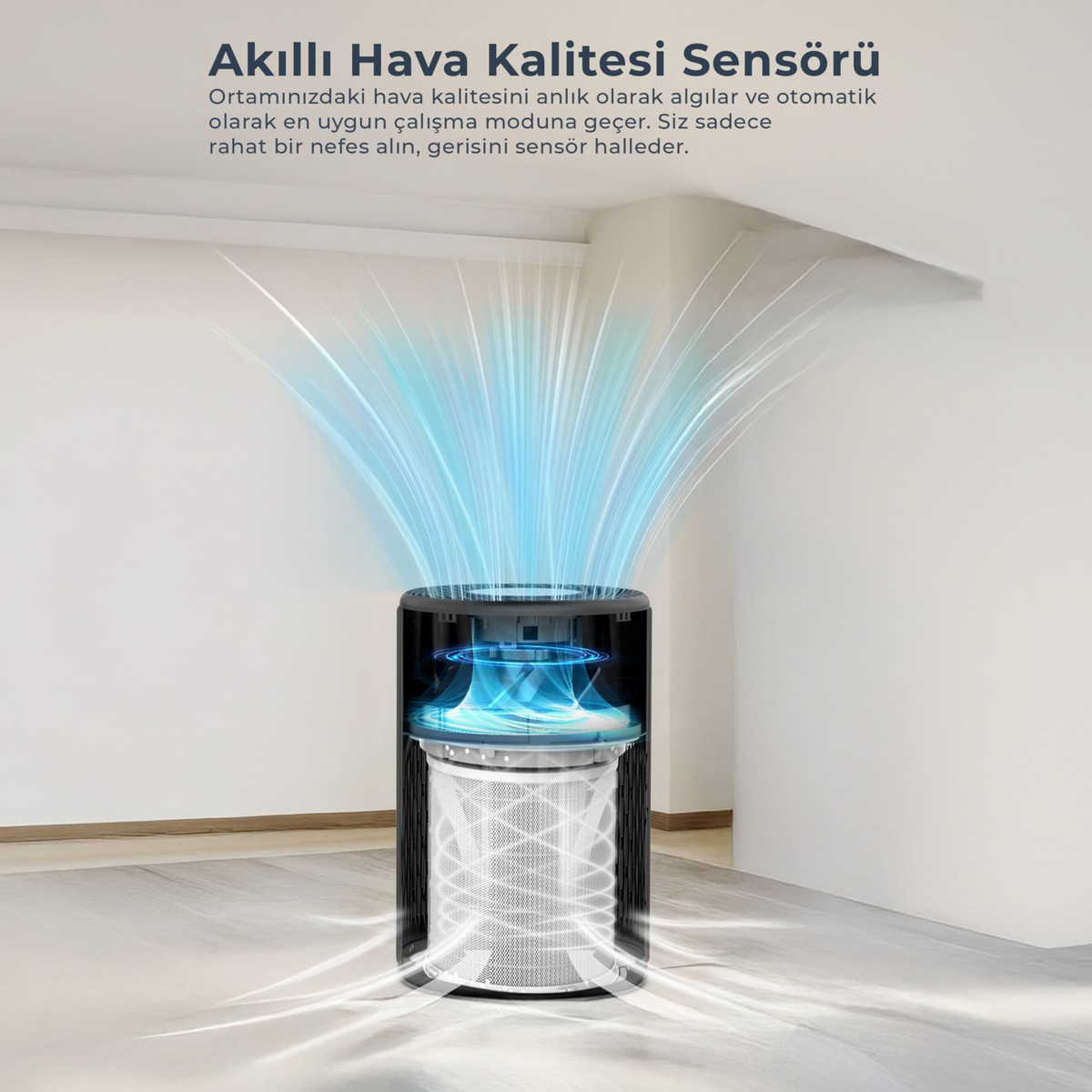 – Standart 220 – 240 V voltaj aralığında çalışabilen bu hava temizleyici, geniş kullanım alanları sunar ve enerji verimliliği sağlar.