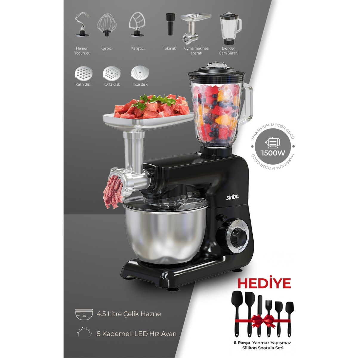 SMX-2775 Çok Amaçlı Mutfak Şefi ( Hamur – Kıyma – Blender Makinesi ) Hediye Spatula Seti