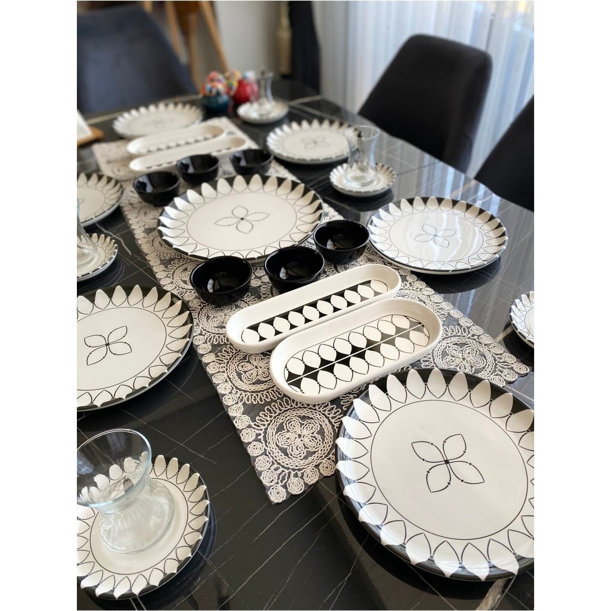 Siyah Elips Model 6 Kişilik 23 Parça Kahvaltı Takımı