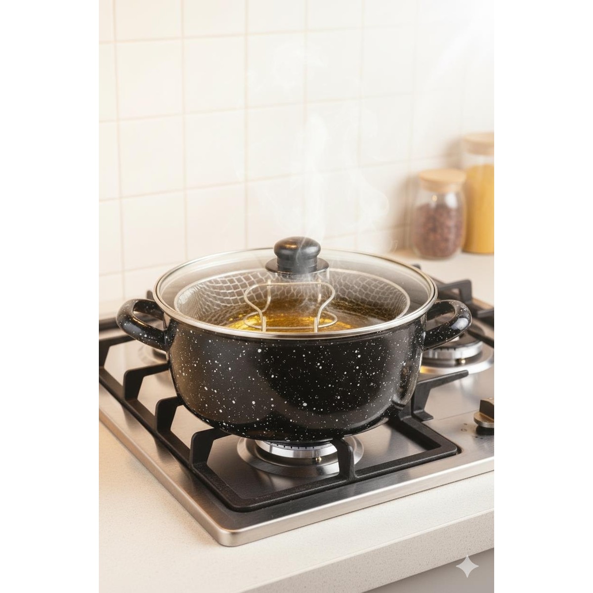 Siyah Kırçıllı Emaye Fritöz Tencere 24 cm 5,5 Lt