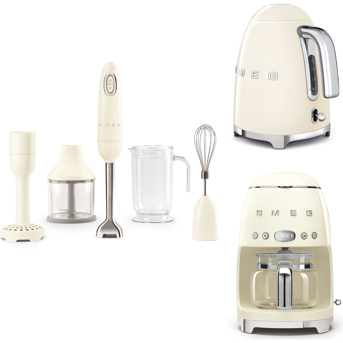 Smeg Krem Kettle-Filtre Kahve Makinesi ve El Blender Seti
