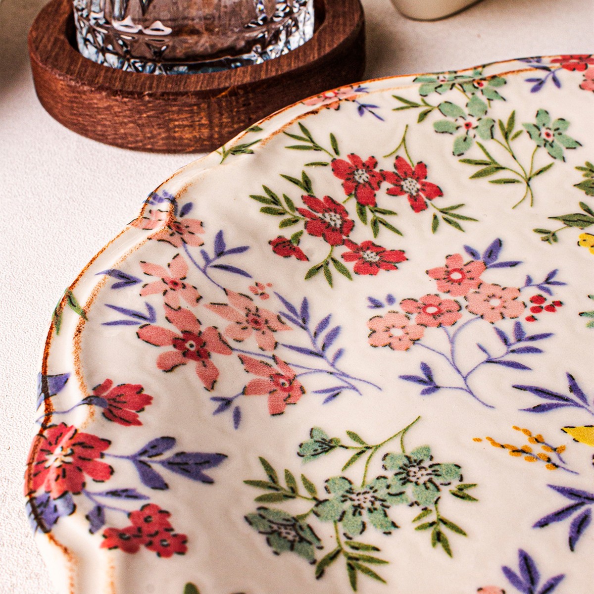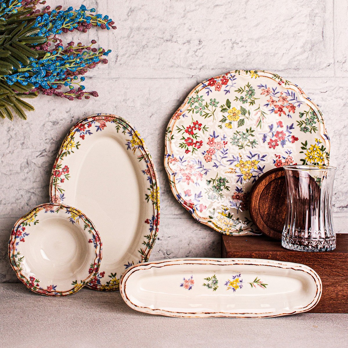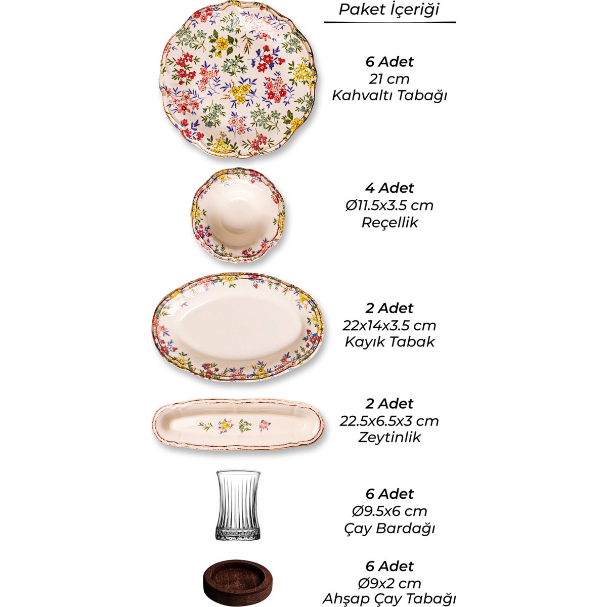 Snippy Rosso -26 Parça Porselen Kenarları Silik Vintage Tuval Model Kahvaltı Takımı 6 Kişilik Kahvaltı Seti