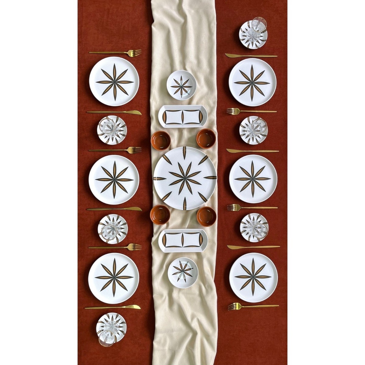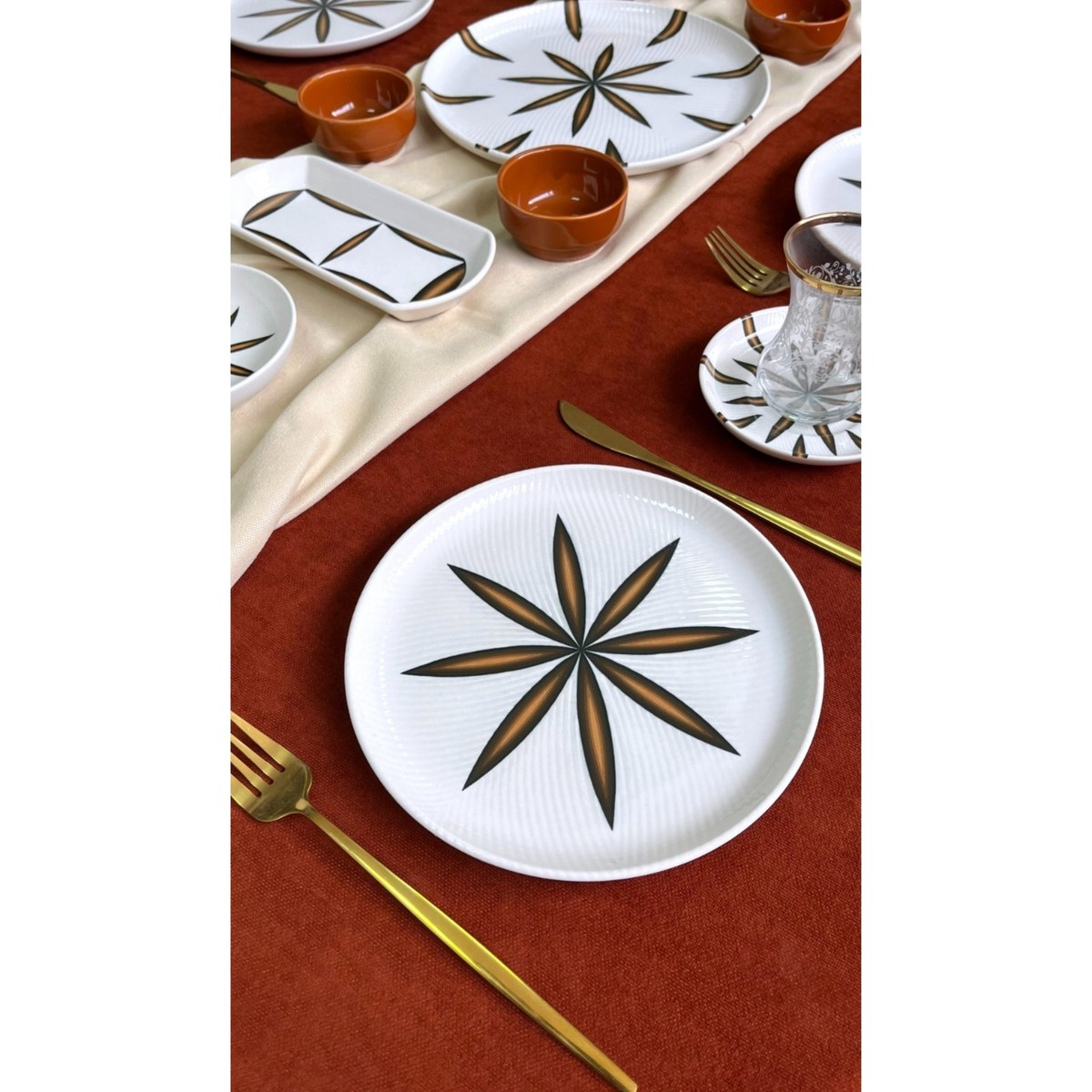 Star Soft 6 Kişilik 21 Parça Kahvaltı Takımı ; 6 adet 20 cm yuvarlak servis ; 6 adet çay tabağı; 4 adet kahverengi sosluk ; 2 adet yuvarlak kahvaltı kasesi ; 2 adet oval peynirlik ; 1 adet 26 cm yuvarlak servis&sunum tabağından oluşmaktadır.; ;