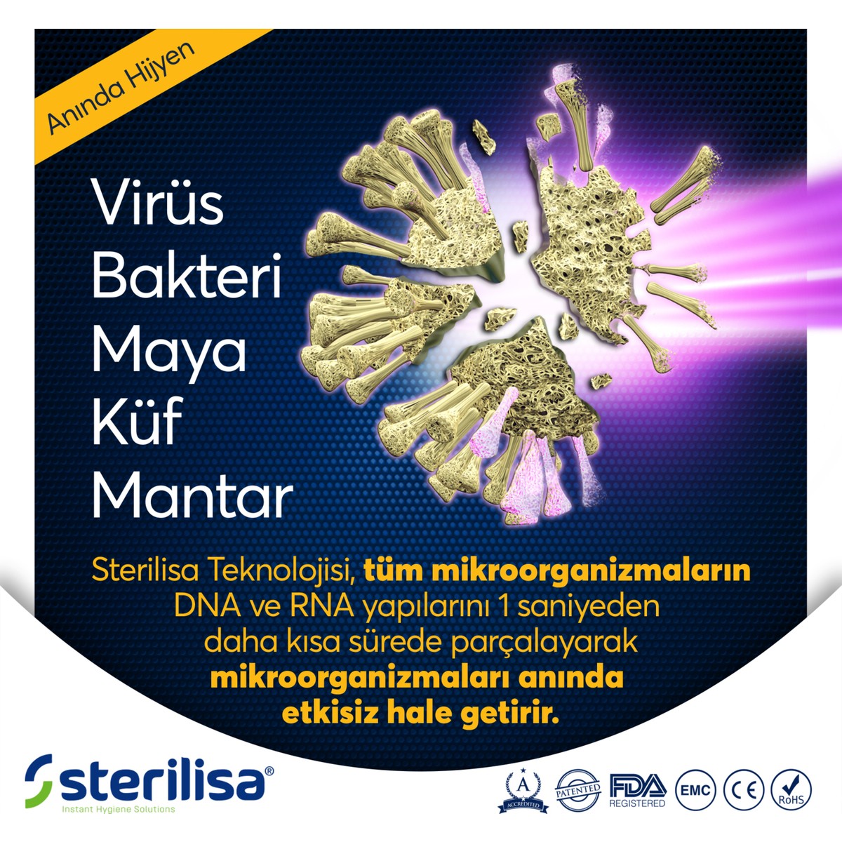 Işık bazlı dezenfeksiyon yöntemi herhangi bir kimyasal içermeyen, iyi bilinen ve kanıtlanmış bir mikroorganizma inaktivasyonu yöntemidir. 100 yıldır dünya çapında gerçekleştirilen laboratuvar uygulamaları sonucunda dezenfeksiyon sağlamada güvenilir ve etkili olduğu kanıtlanmıştır. Sterilisa, geliştirdiği kuvvetlendirilmiş ışık bazlı yüksek teknolojisi sayesinde havadaki bakteri, virüs, mikrobiyal maya, küf ve mantarı anında yok etme gücüne sahiptir.
