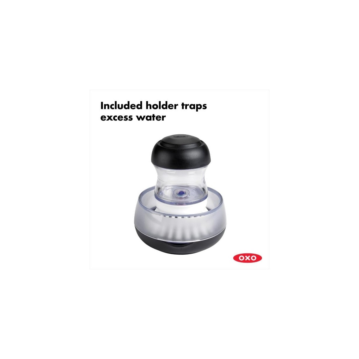 Fırçanın bulaşık deterjanı vermesi için hafif bir düğmeye basmanız yeterlidir Fırçanın dayanıklı kılları vardır, pişmiş kalıntıları fırçalayın ve kaplamalı tencereler için uygundur Tutucu, ağızlı bir damlama kasesine sahiptir Kaymaz yüzey – Good Grips kompakt el süpürgesi ve faraş