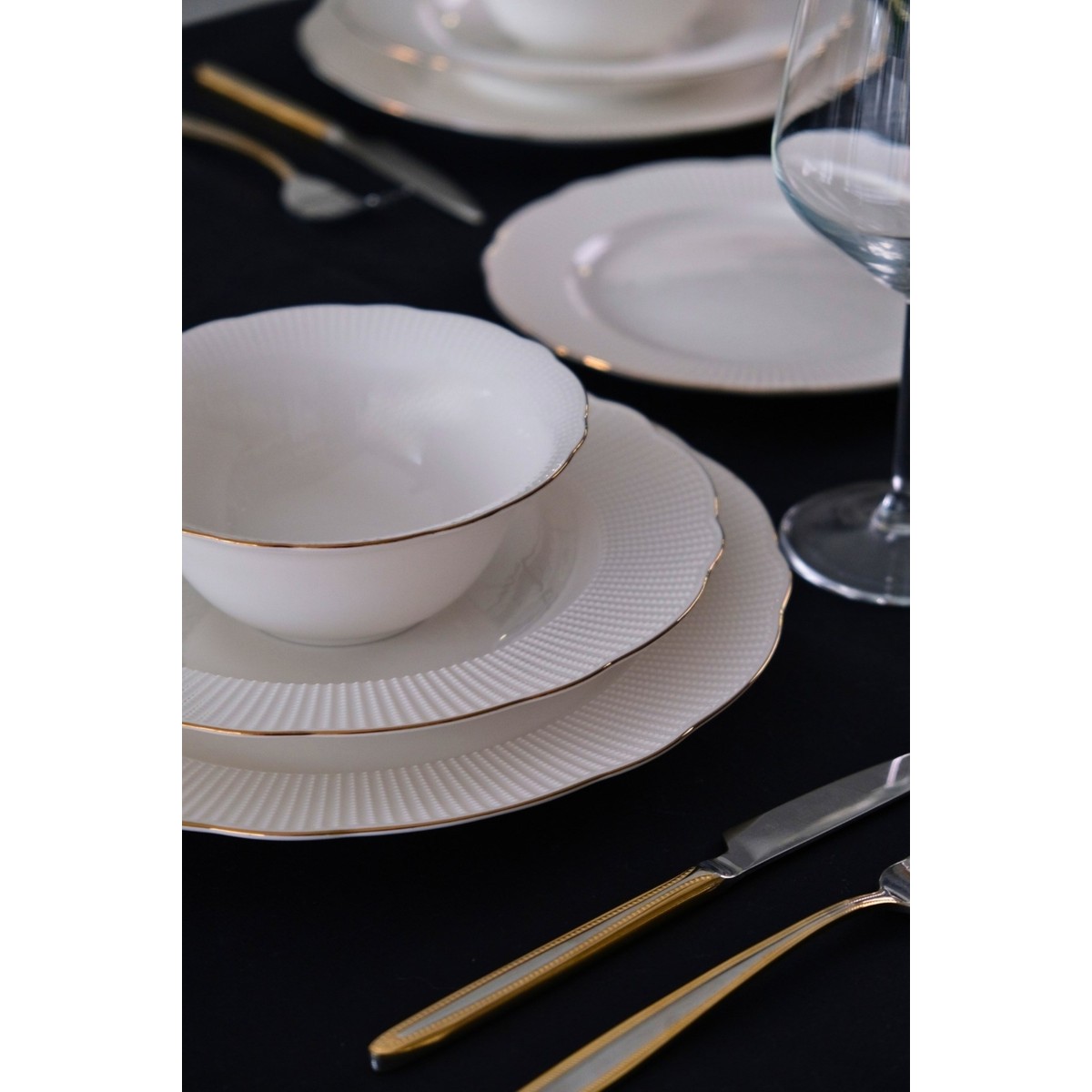 Tabak Evi Porselen Ilay Yemek Takımı Altın Yaldızlı 6 Kişilik 24 Parça