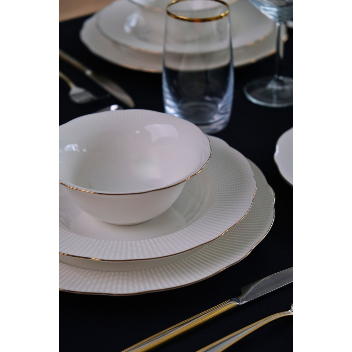 Tabak Evi Porselen İlay Yemek Takımı Altın Yaldızlı 6 Kişilik 24 Parça