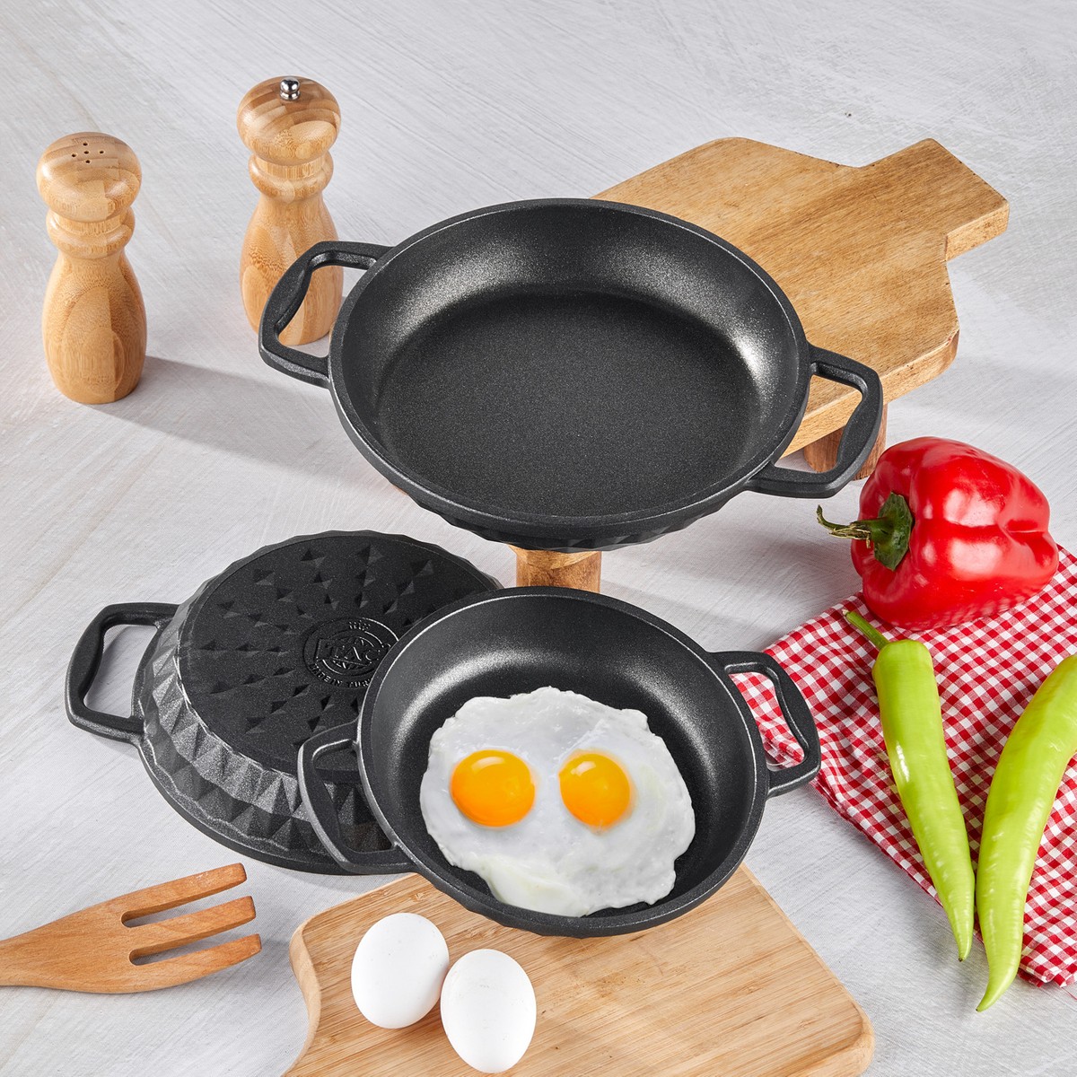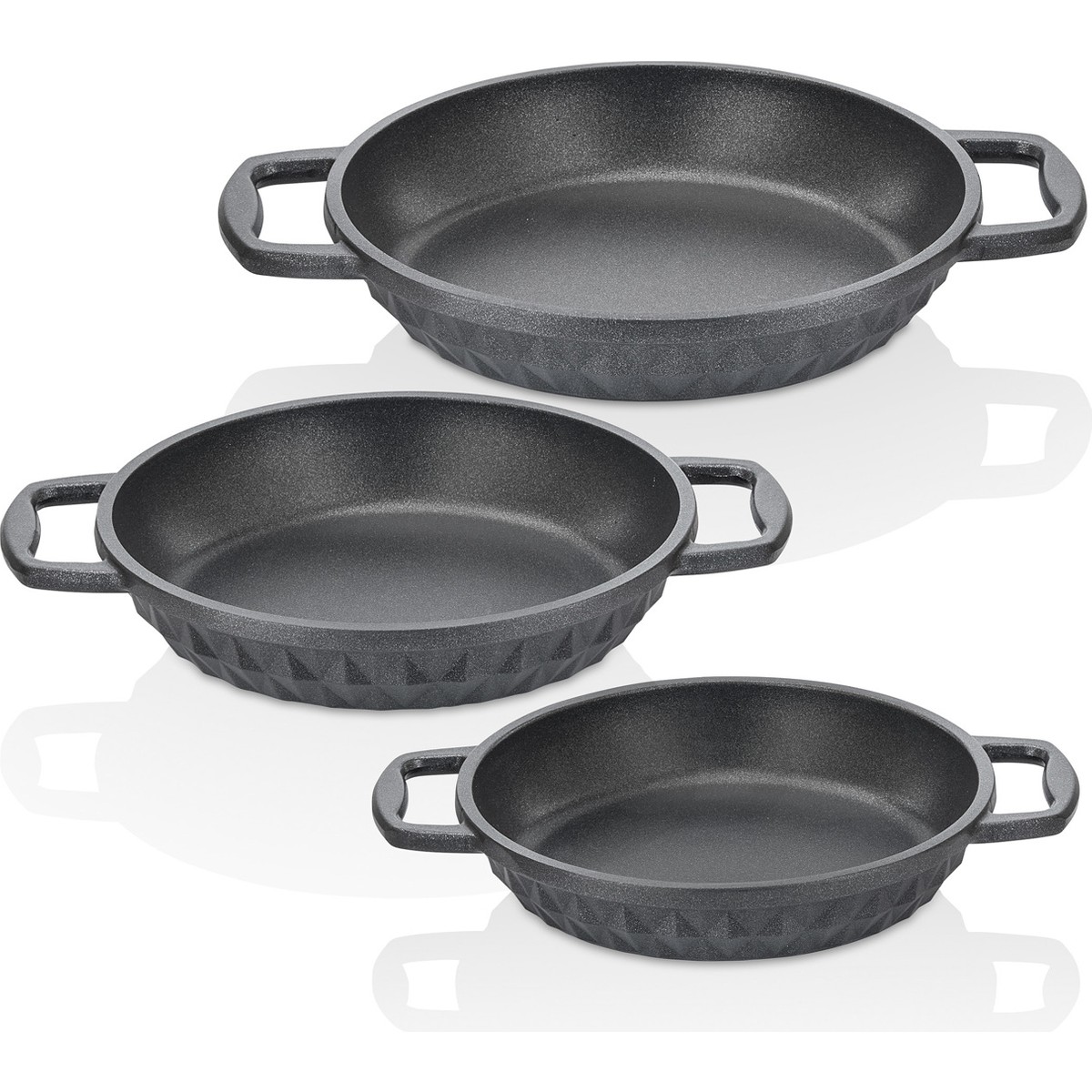 Bella 3’lü Sahan Set Siyah tanıştınız mı? Sağlam ve dayanıklı yapısı sayesinde uzun yıllar güvenle kullanabileceğiniz kalitede bir malzemeden oluşur. Yanmaz yapışmaz yüzeyi ve dengeli ısı dağılımı ise onu en zorlu yemeklerin bile üstesinden gelebilen bir aşçı yapar.