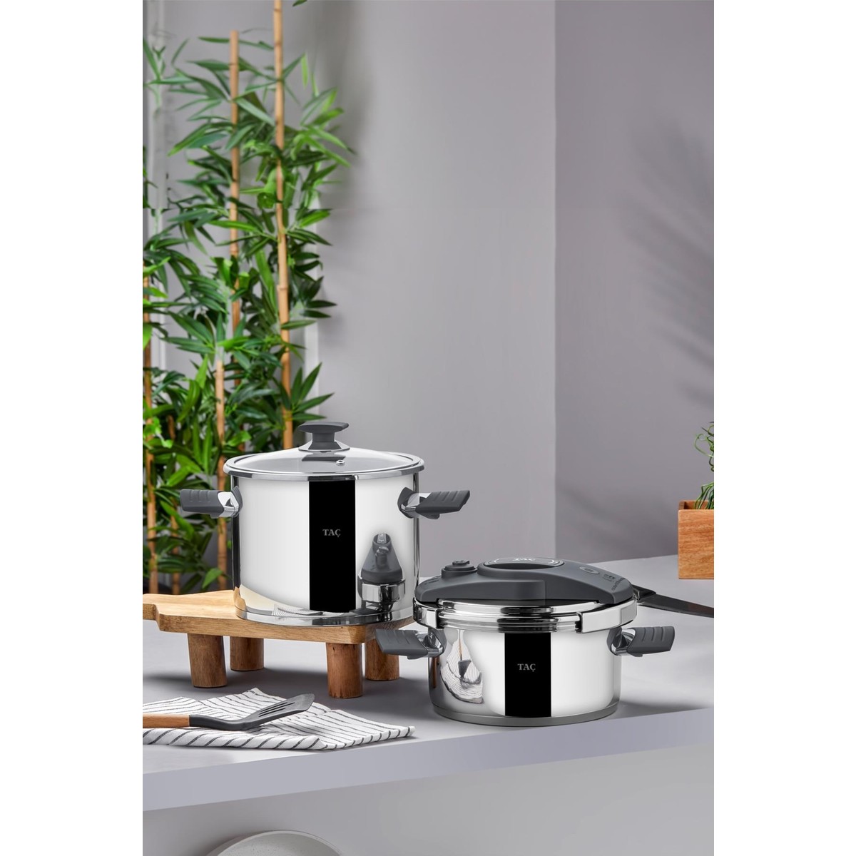 Taç Enio 4-6 Litre Düdüklü Tencere Seti Gri;