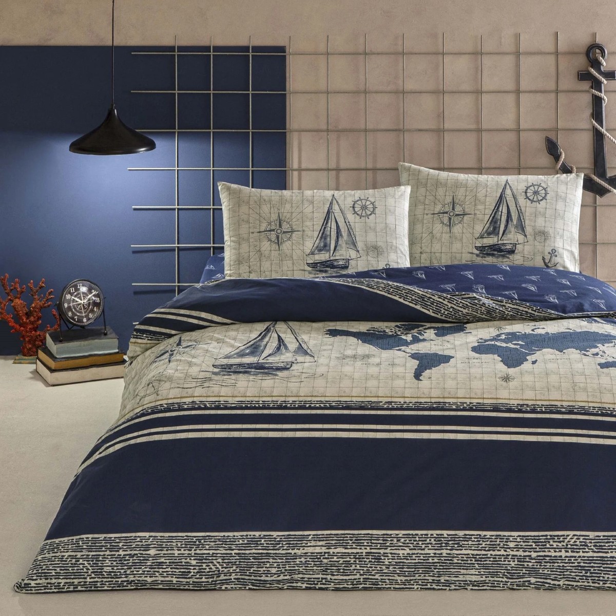 Genç Modası Ranforce Çift Kişilik Nevresim Takımı Muna Lacivert