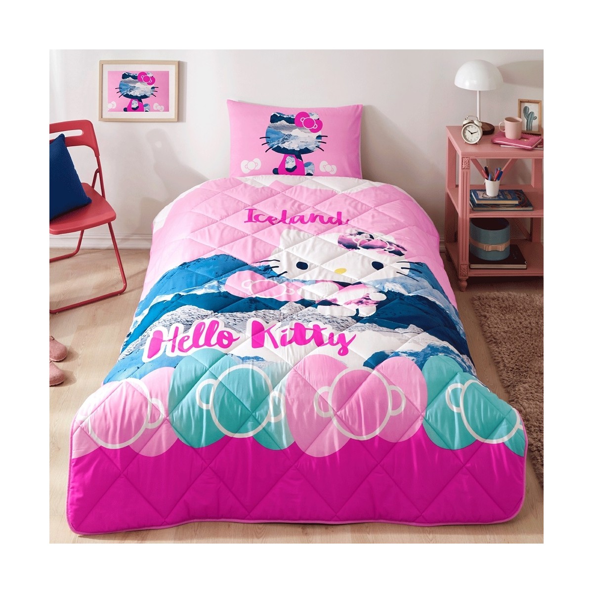 TAÇ TEK KİŞİLİK LİSANSLI YORGAN SETİ (UYKU SETİ) HELLO KİTTY ICELAND (YASTIK HEDİYELİ)