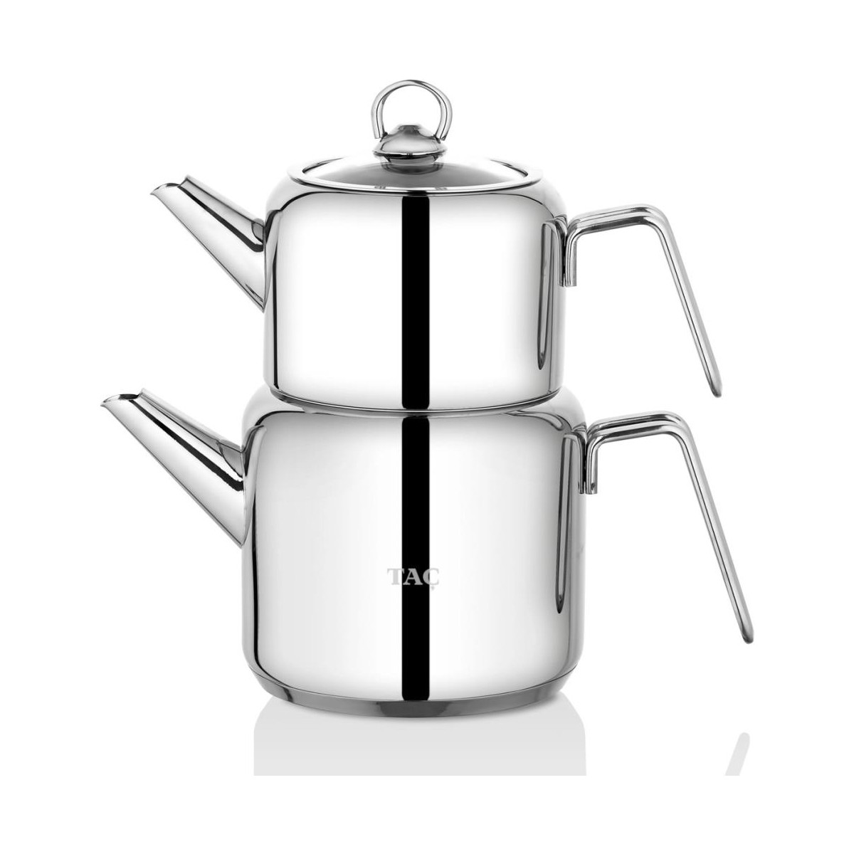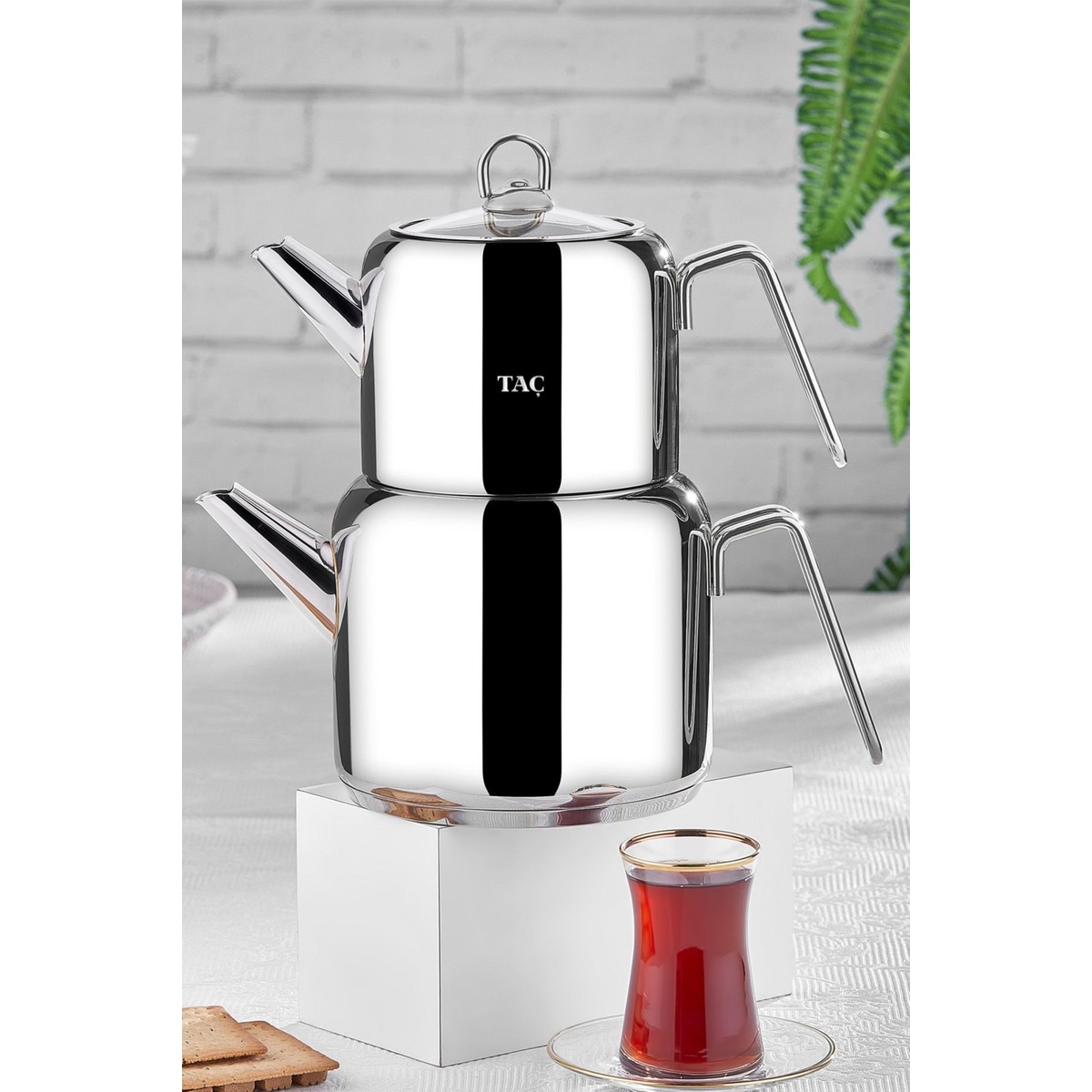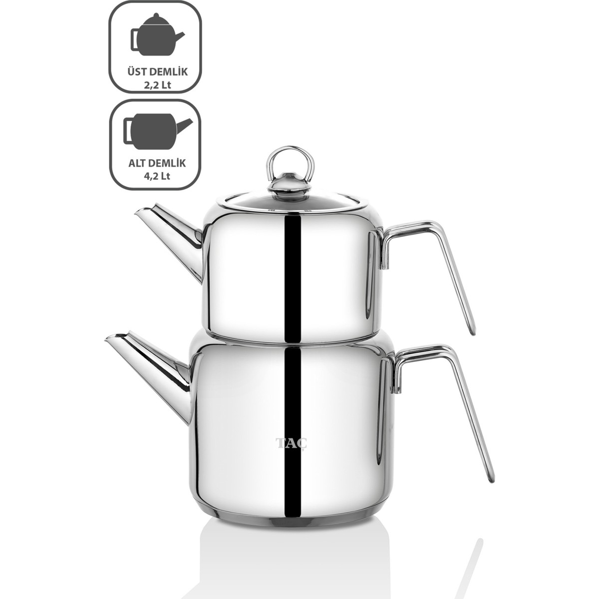 Taç Hera Jumbo Paslanmaz Çelik Çaydanlık Takımı 2,2 L + 4,2 L Platin Renk Tüm Ocak Tiplerine Uygun