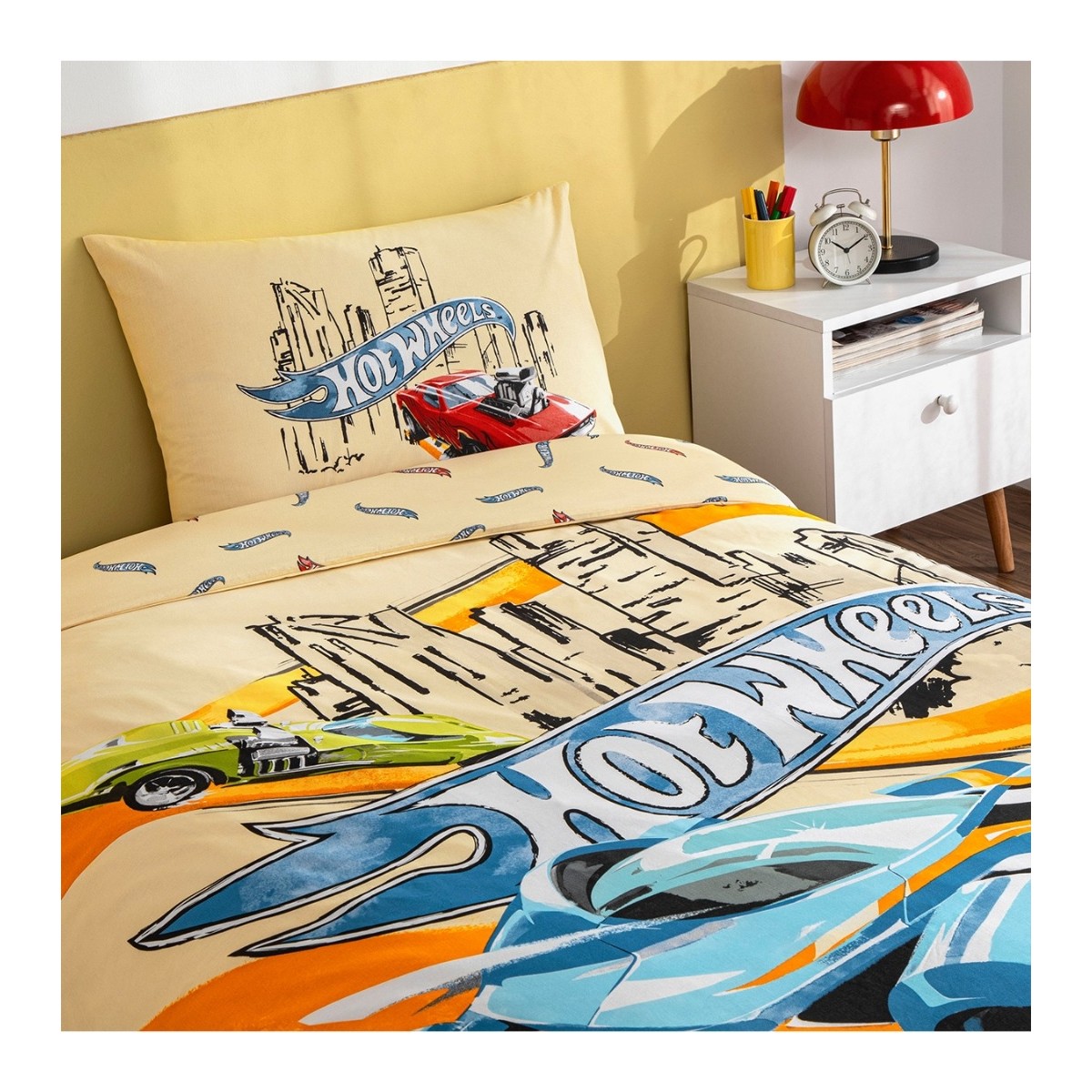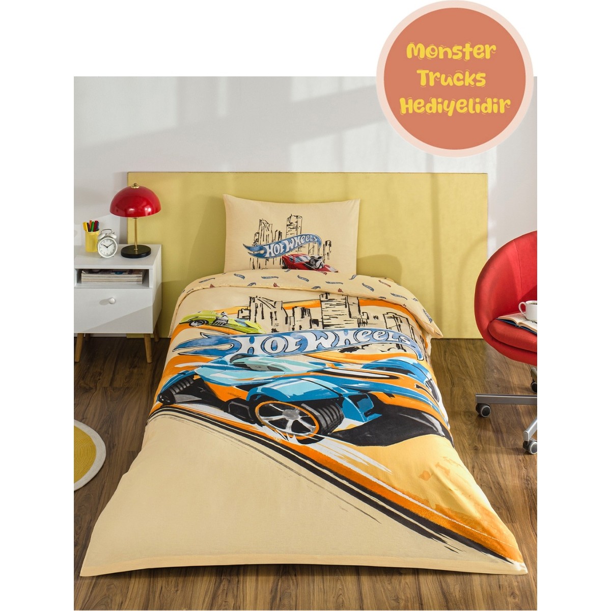 Taç Lisanslı Hot Wheels Winner Tek Kişilik Pamuk Nevresim Takımı & M. Track Hediyeli