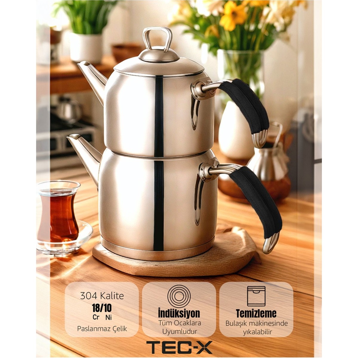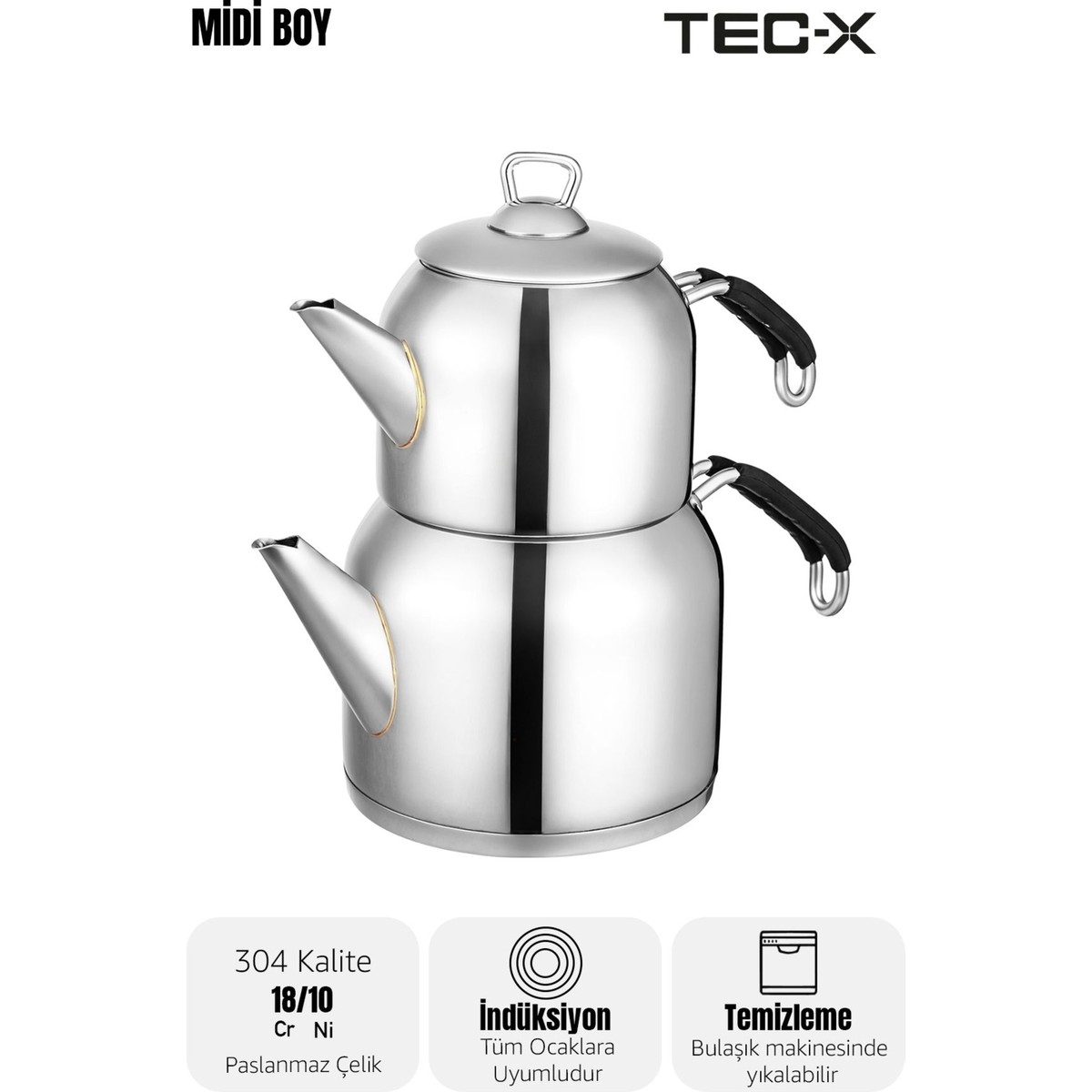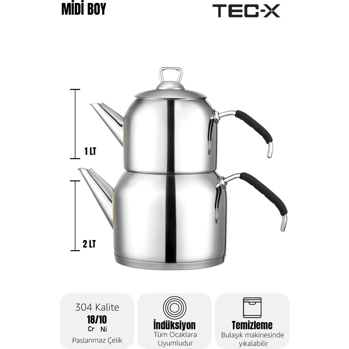 • Tec-X Nero Midi Boy Çaydanlık (1 Lt. – 2 Lt.) Orta Boy Paslanmaz Çelik