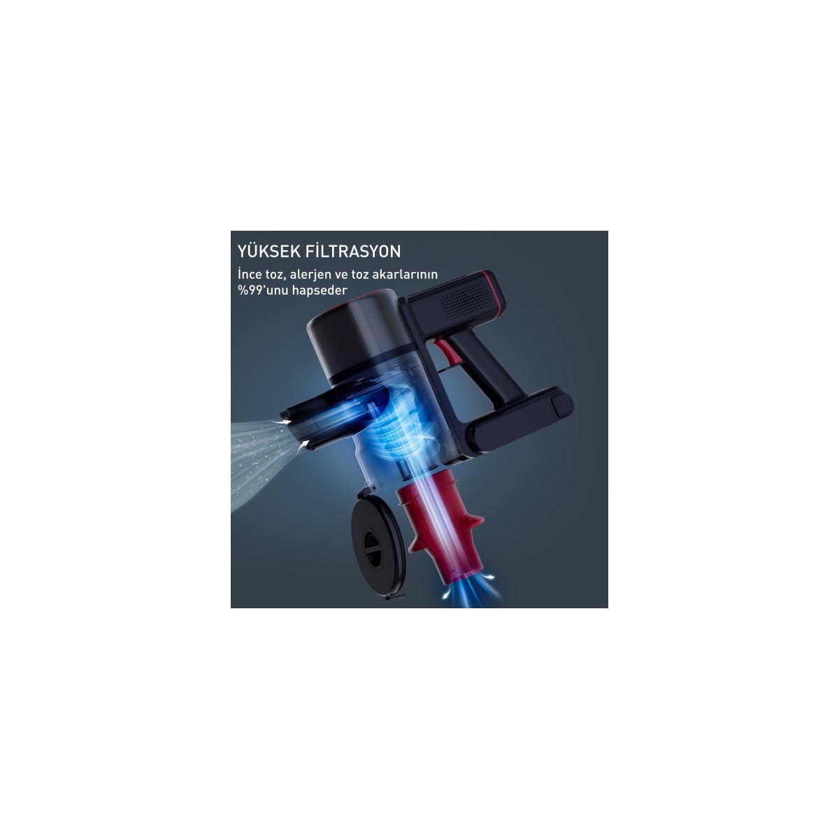 YÜKSEK FİLTRASYON: İnce tozların, alerjenlerin ve toz akarlarının %99’unu yakalayan motorun arkasına yerleştirilmiş olan gelişmiş bir filtreleme sistemi ile temiz hava salar,