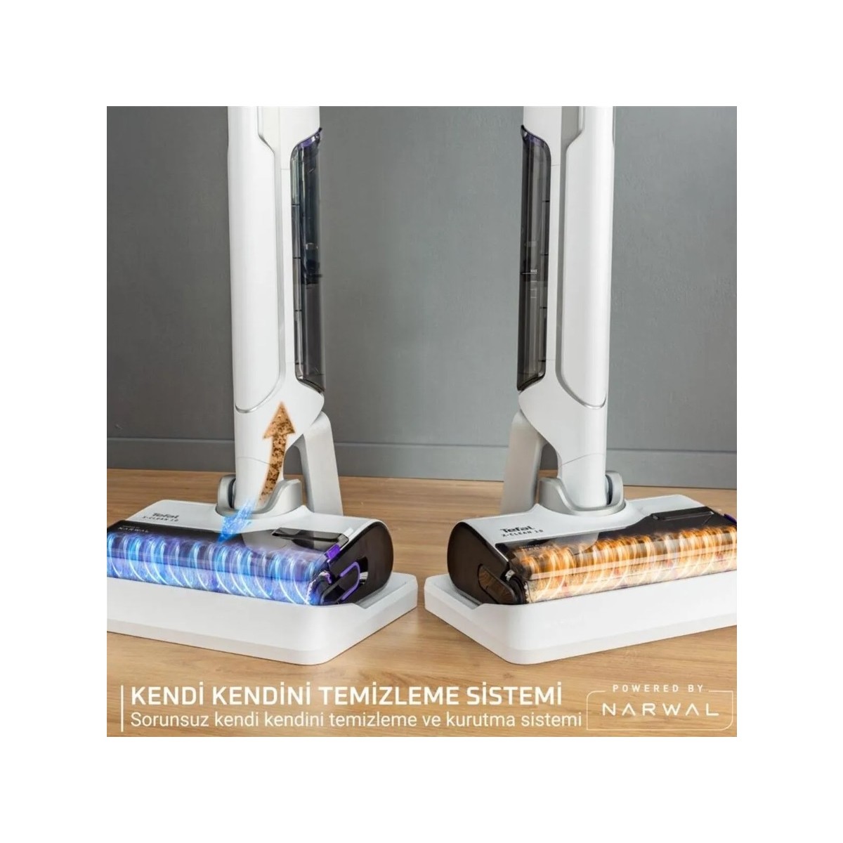 Tefal X-Clean 10 Islak Sert Zemin Temizleyici Kablosuz Dikey Süpürge-Kendini Temizler Kurutur – İlave Rulo