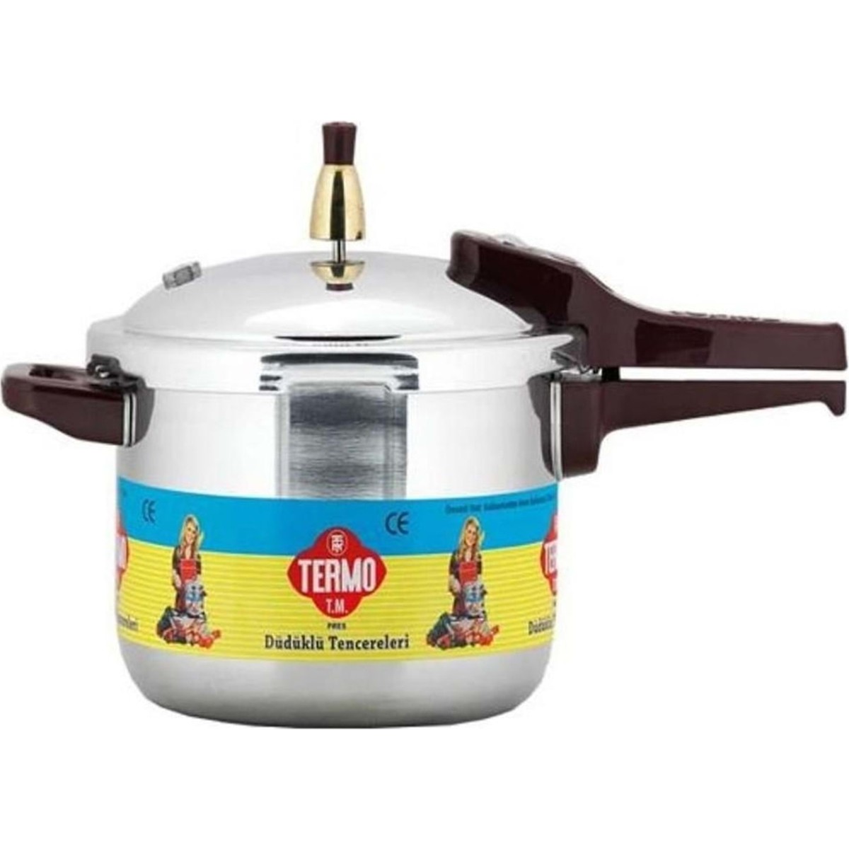 Termo alüminyum düdüklü tencere 7 litre Hızlı pişirme Emniyet subabı Silikon conta % 100 alüminyum Pişirme basıncı: 1 bar Emniyet basıncı: 2,5 bar Ilk kullanım öncesi lütfen kullanım talimatını okuyunuz Düdüklü tencerenizi ilk kullanmadan önce içinde 1 litre kapağı açık şekilde süt kaynatılması tavsiye edilir Kaynayan sütü atınız Uyarılar ve önemli notlar sayfasında yazan talimatlara uyulması tavsiye edilir.