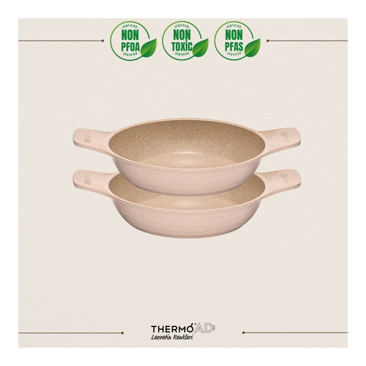 Thermoad 2’li Güveç Sahan Seti Granit Döküm Tava Seti 20CM 22CM – Vizon
