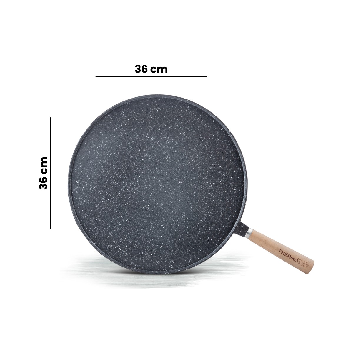 Thermoad Gözleme Tavası 36 cm Döküm Kaplama ile Uzun Süre Isı Muhafazası Gri