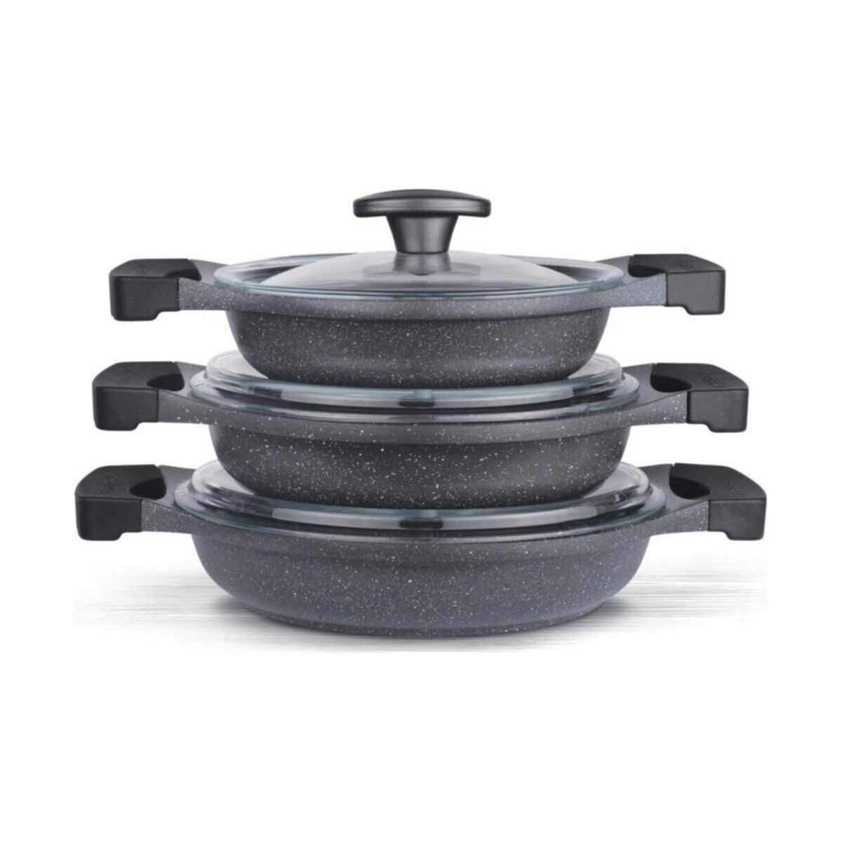 Daha önce Graneu modelinin tava ve iki adet tenceresini almıştık. Bu seferde kapaklı üçlü sahan setini aldık. İyi ki almışız . Eşimin de çok hoşuna gitti.