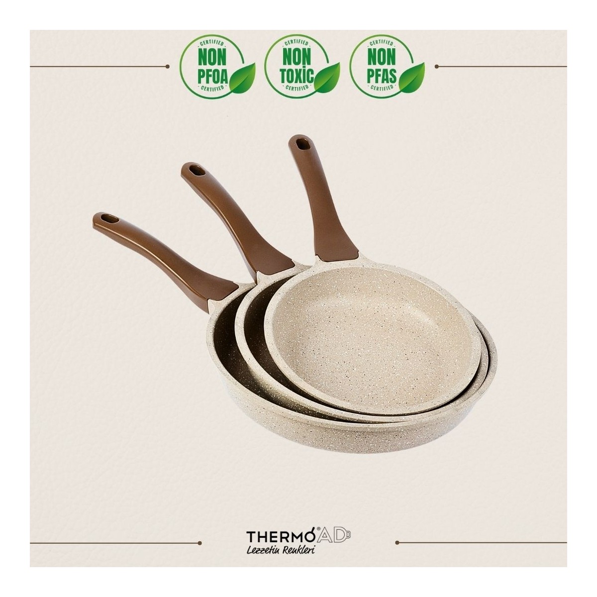 ThermoAD | Tava Seti | 3 Parça | 20cm-24cm-28cm | Vizon