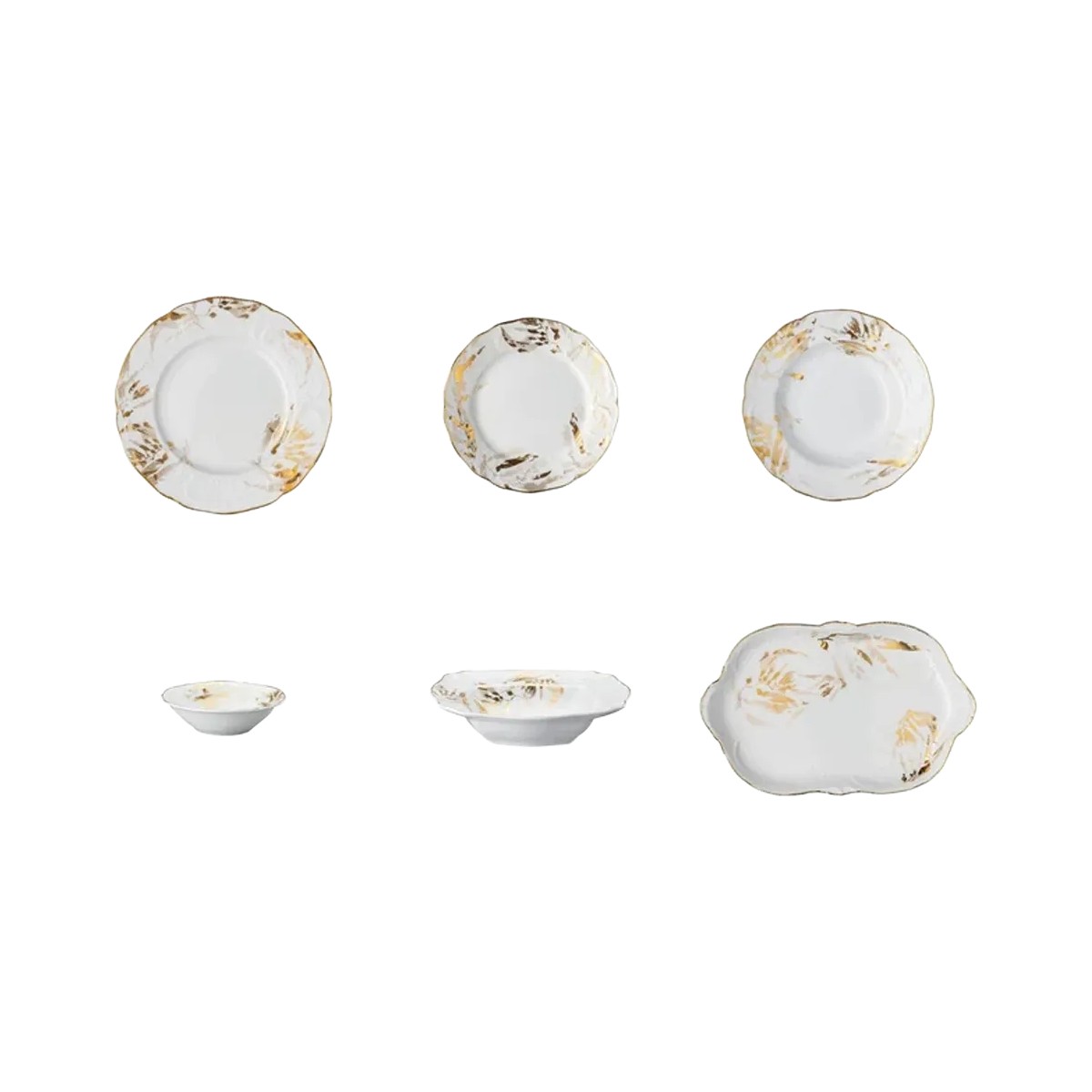 Parça Adı Adet Boyut (Çap) Kullanım Amacı Yemek Tabağı 12 adet 26 cm Ana yemekler Çukur Tabak 12 adet 23 cm Çorba, makarna veya sulu yemekler Tatlı Tabağı 12 adet 19 cm Başlangıçlar veya tatlılar Kase 12 adet 15 cm Kahvaltılık, soslar veya küçük porsiyonlar Salata Kasesi 1 adet 26 cm Ortaya servis salata Oval Servis Tabağı 2 adet 33 cm Büyük servisler Oval Servis Tabağı 1 adet 28 cm Küçük servisler