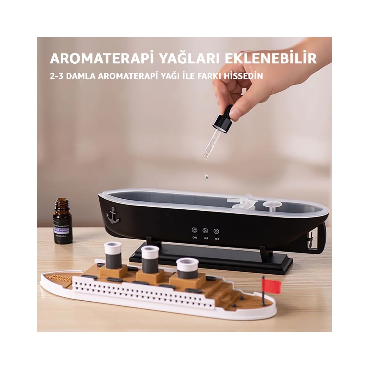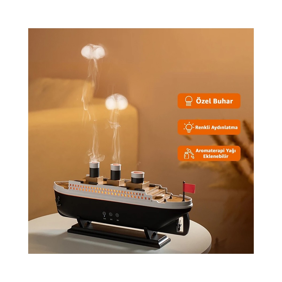 Titanic Aromaterapi Hava Nemlendirici Gemi Buhar Makinesi LED Işıklı Aromaterapi Difüzörü