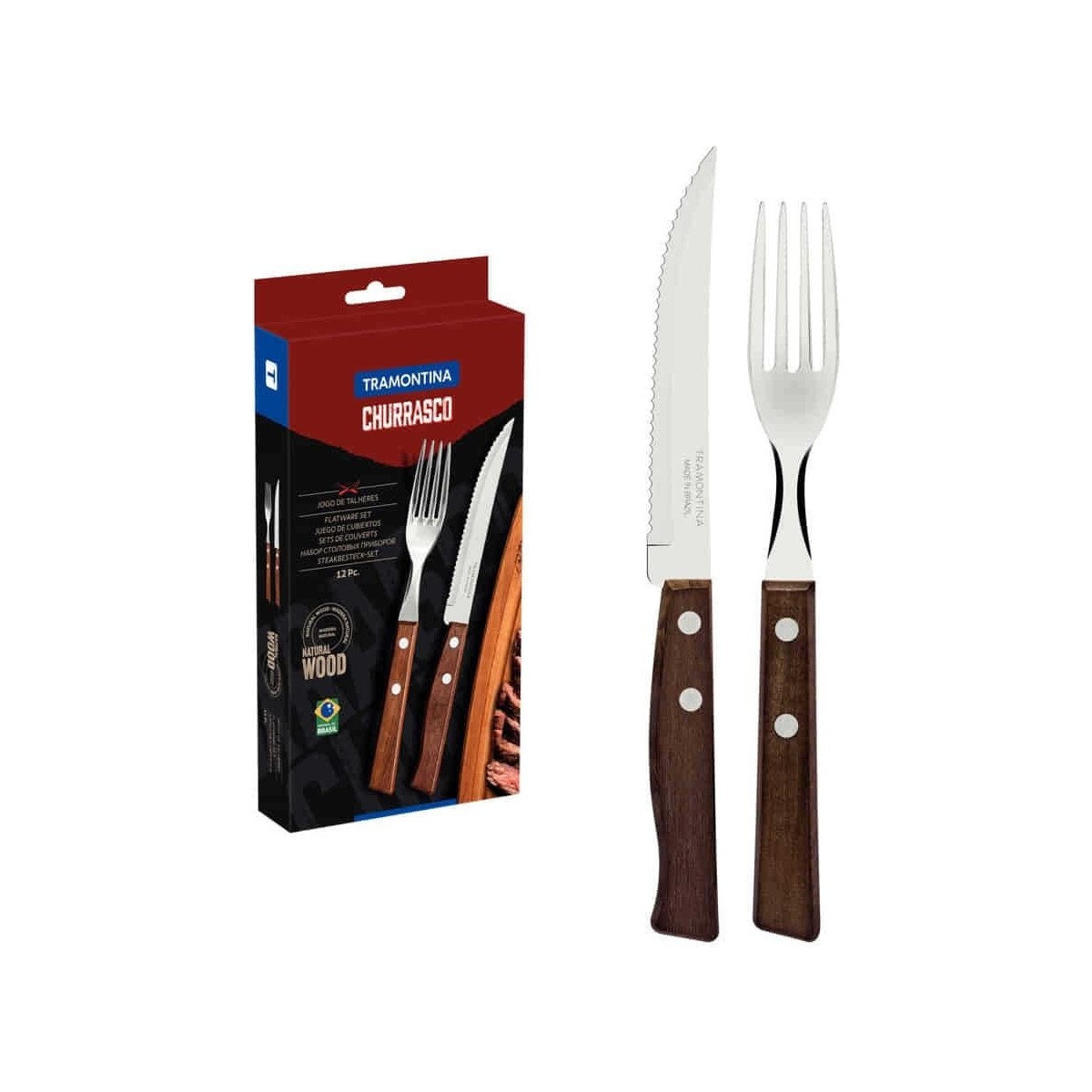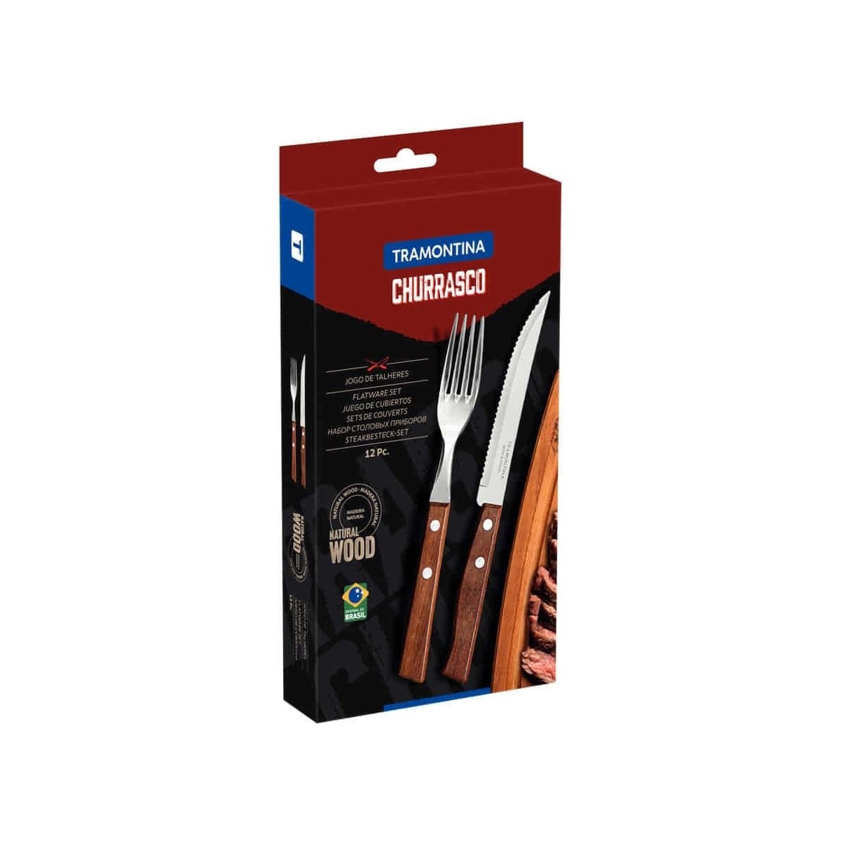 Tramontina’nın Churrasco serisinden doğal ahşap saplı, paslanmaz çelikten yapılmış 12 Parçalı barbekü sofra takımıyla barbekünüz daha da eksiksiz olacak. Bu lezzetli ritüel için özel olarak tasarlanan set, son derece dayanıklı paslanmaz çelikten yapılmış bıçak ve çatallardan oluşuyor. Ayrıca doğal ahşap kulpları da bulunmaktadır. Bıçaklar mükemmel bir kesimi garanti eder, böylece etin tadını daha da fazla çıkarabilirsiniz, bu da elbette barbekünüzün başarılı olacağı anlamına gelir!