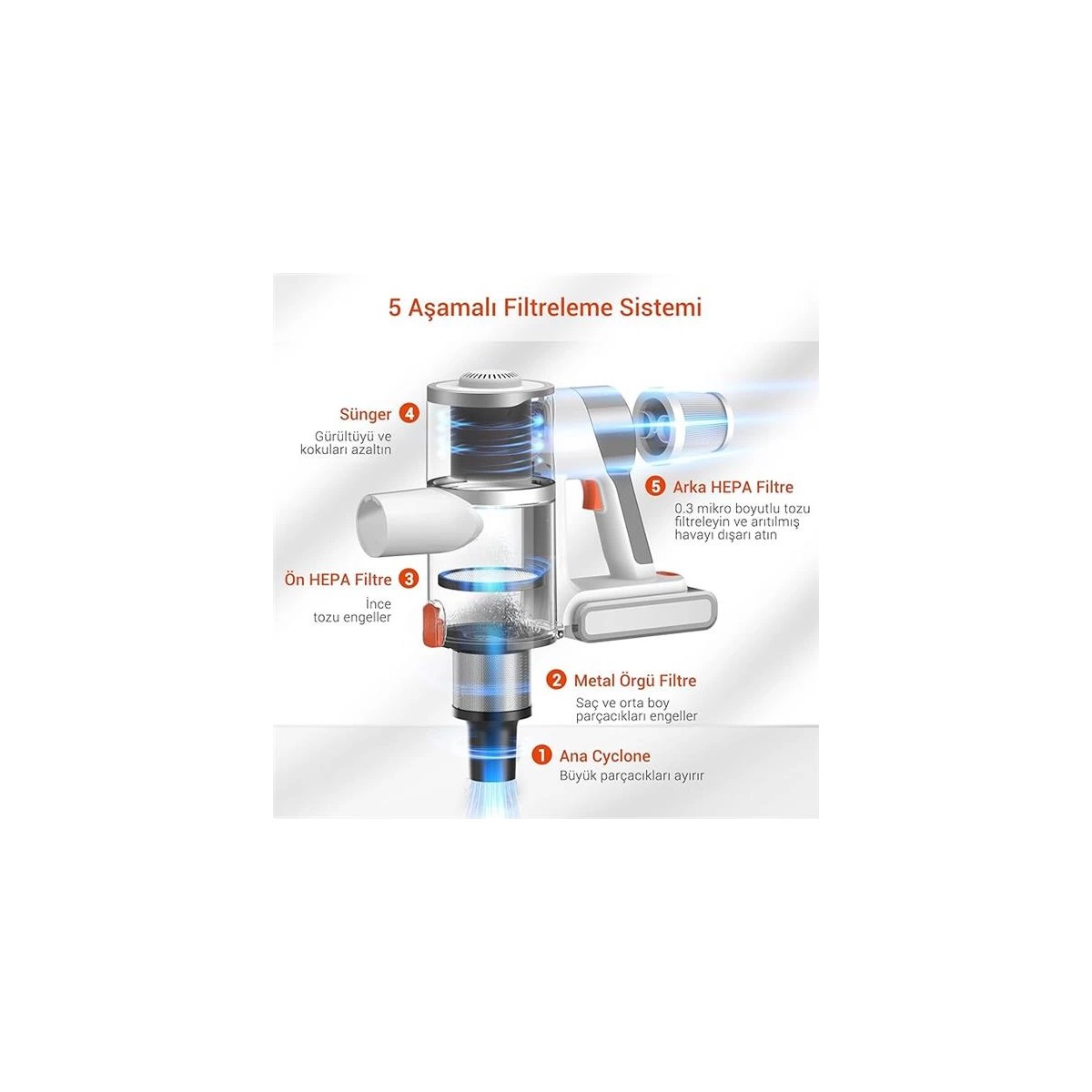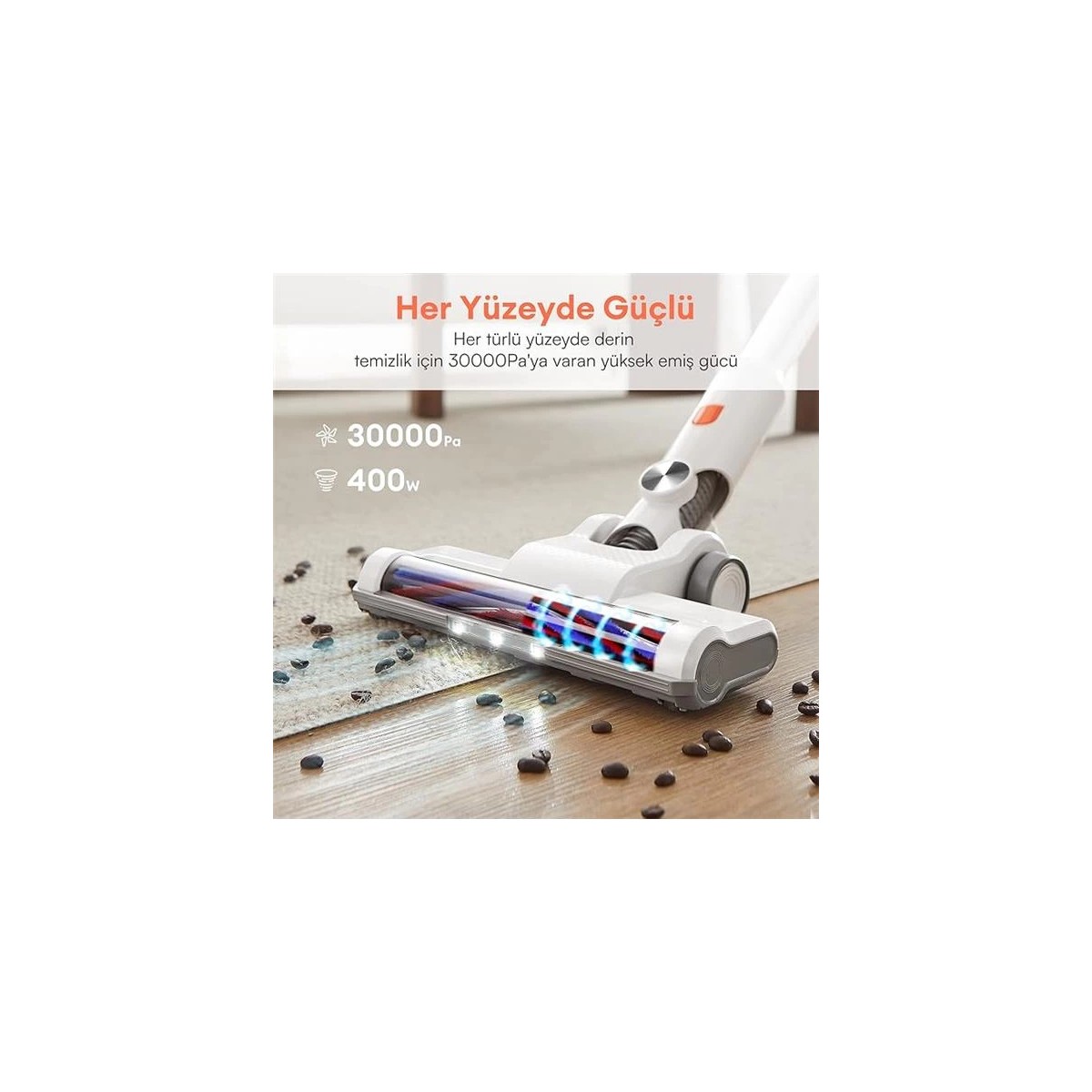 400 Watt motoruyla akülü elektrikli süpürge zemin ve halılardan toz kırıntı ve hayvan tüylerini zahmetsizce temizlemek için 30000 Pa güçlü emiş gücü sunar İki modu farklı temizlik gereksinimlerinizi karşılamanızı ve serbestçe geçiş yapmanızı sağlar U10 Pro kablosuz elektrikli süpürge sadece 268 kg ağırlığındadır böylece çocuklar ve yaşlılar için de kullanımı kolaydır Böylece temizlik zahmetsiz bir görev haline gelir Ayrıca U10 Pro elektrikli süpürge daha iyi bir kullanım deneyimi için elektrikli süpürgenin uzunluğunu boyunuza ve kullanım yerine göre ayarlamanızı sağlayan teleskopik bir çubuk ile donatılmıştır Kapsamlı temizlik imkanları U10 Pro kablosuz elektrikli süpürge ana kullanım olarak bir rulo fırça ve bir derz başlığı ve bir döşeme başlığı ile donatılmıştır Böylece zeminler mobilyalar arabalar derzler yataklar ve daha fazlası sorunsuz bir şekilde temizlenebilir Ayrıca elektrikli süpürgenin döner ana fırçada bir LED ışığı vardır böylece toz için yer kalmaz Alerjisi olanlara uygundur U10 Pro kablosuz elektrikli süpürge tozun ultra ince partiküllerin ve saçların 9999unu yakalayan 5 katmanlı filtre sistemi ile donatılmıştır sadece temiz hava atar ve ikincil kirlenmeleri önler Bu sayede bu akülü elektrikli süpürge alerjisi olanlar için de uygundur Bu elektrikli süpürgenin dahili 2200 mAh pili 35 dakikaya kadar çalışma süresi sunar ve çıkarılabilir ve ayrı olarak şarj edilebilir Yedek piliniz varsa temizleme süresini iki katına çıkarabilirsiniz Bu ürünün Amazoncomtr tarafından 2 yıllık garantisi vardır