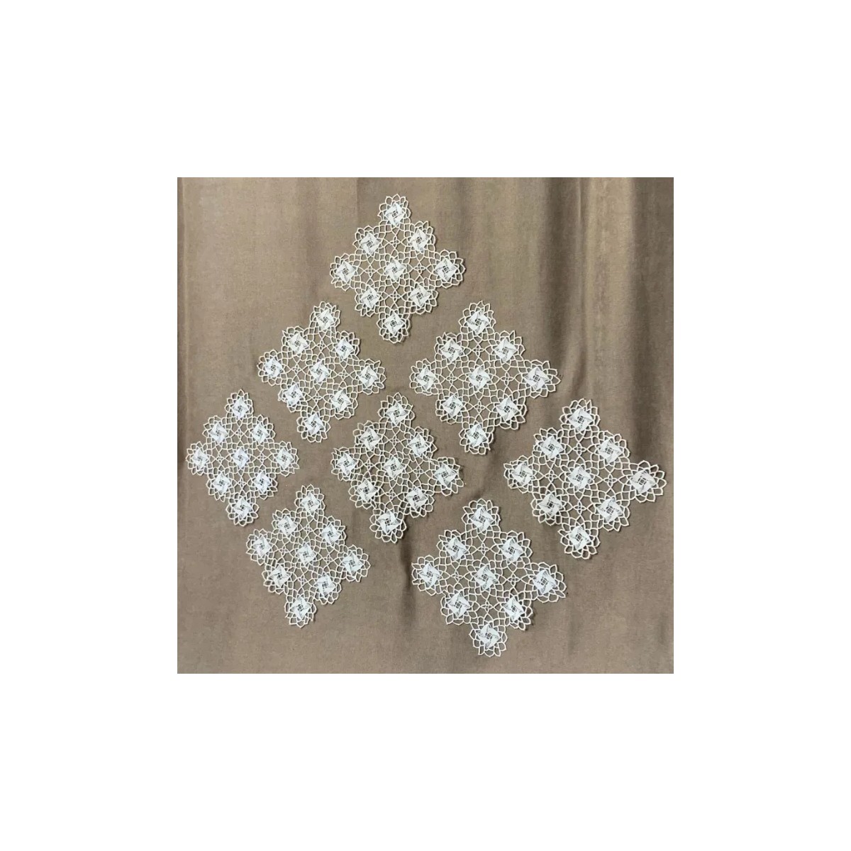 el yapımı örgü tekniğiyle özenle hazırlanmış bu 8’li dantel örtü takımı, evinize zarif bir dokunuş katacaktır. her biri detaylı bir şekilde işlenmiş örtüler, yemek masası, sehpa veya diğer yüzeylerde kullanabileceğiniz pratik ve estetik bir seçenek sunmaktadır. 8 adet 19 x 19 cm boyutunda kare örtüden oluşmaktadır. dantel deseni, sade bir şıklık sağlar ve her türlü dekorasyona uyum gösterir. hem günlük kullanım için hem de özel günlerde tercih edilebilecek zarif bir üründür.