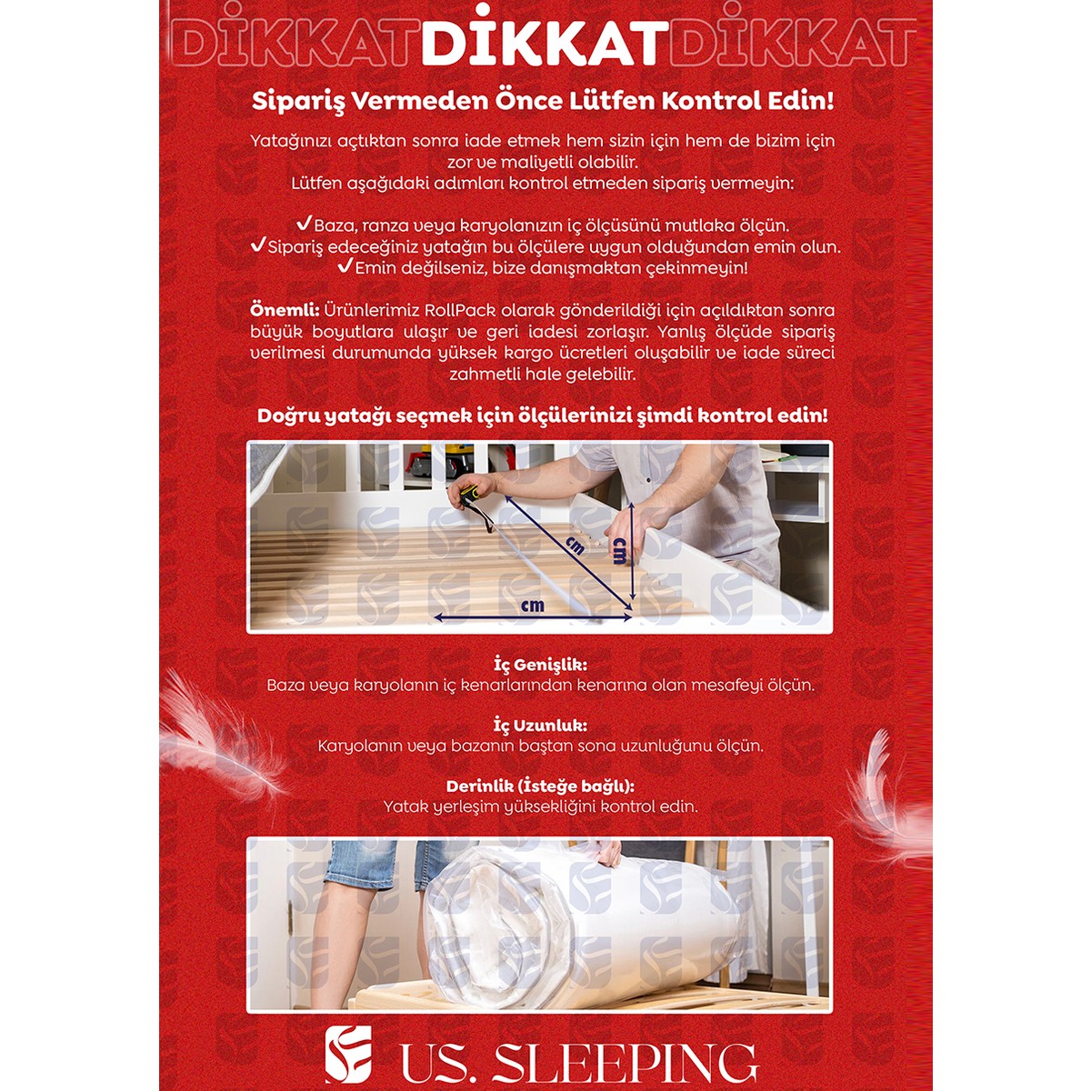 Ürün ambalajı dikkatli bir şekilde açılmalıdır. Yatağın kumaşına ve dokusuna zarar verilmemelidir.