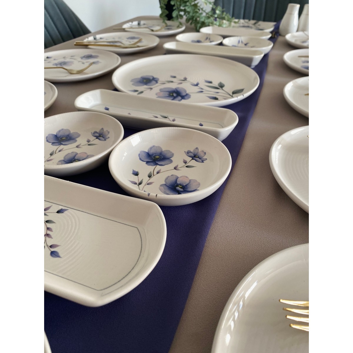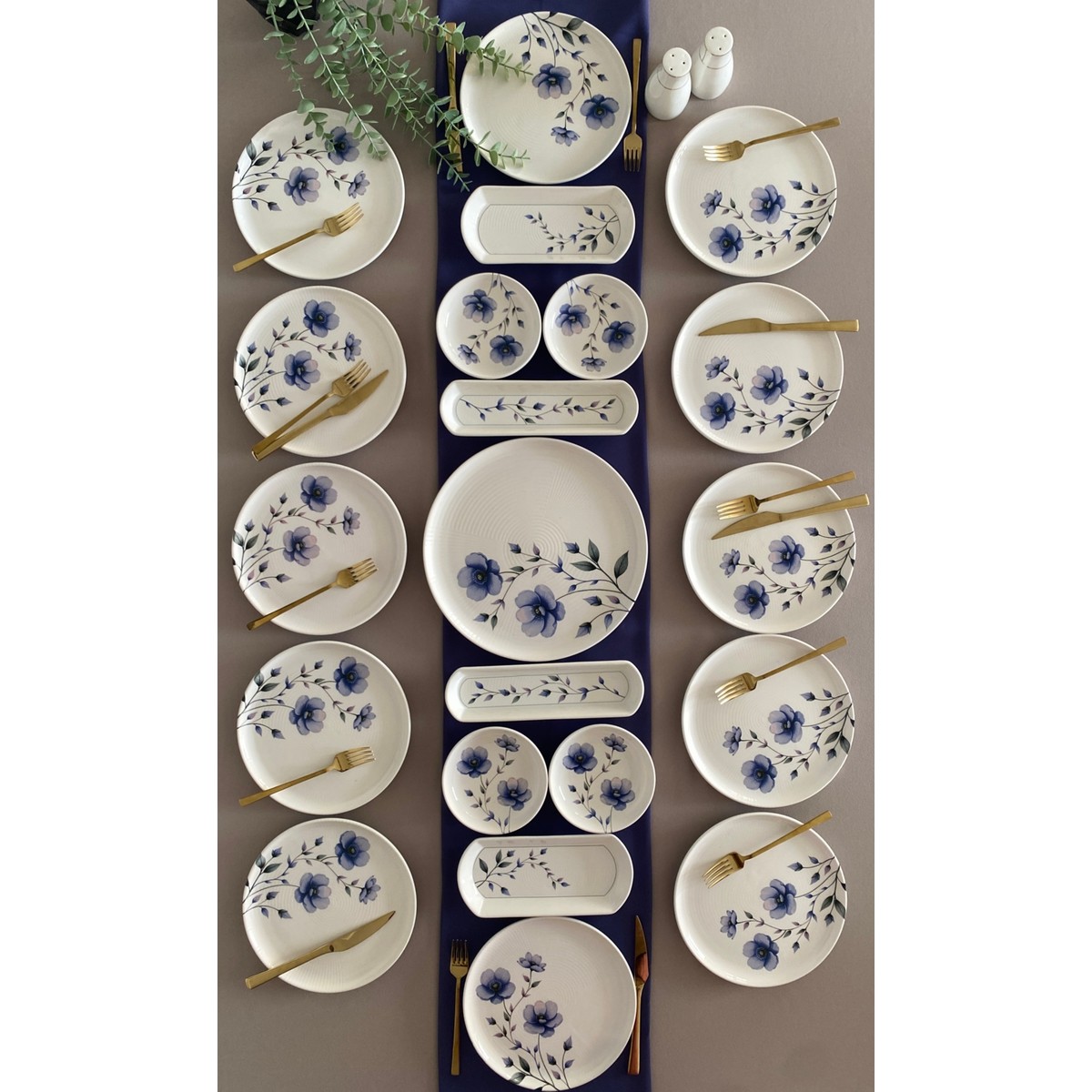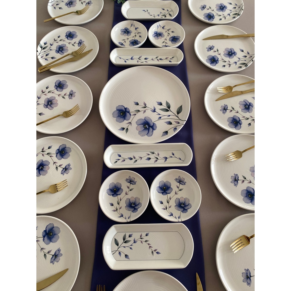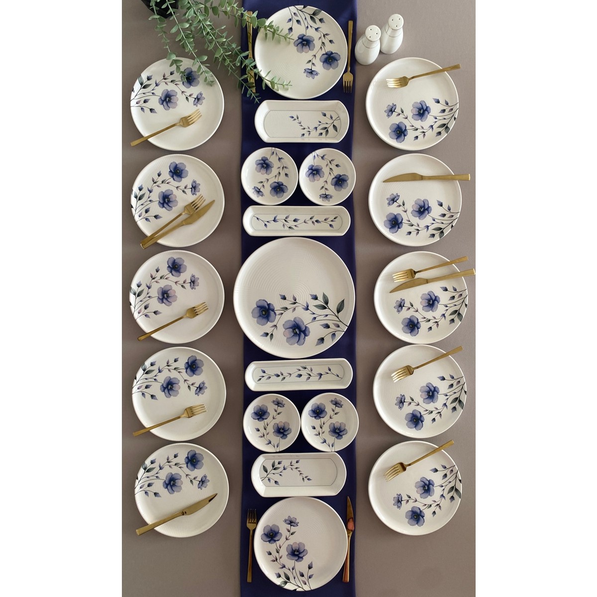 *12 adet 20 cm servis tabağı *4 adet yuvarlak çerezlik *2 adet küçük oval tabak *2 adet zeytinlik *1 adet orta büyük servis tabağı
