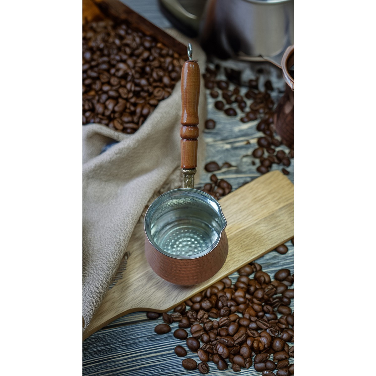 - Vercetti Store Osmanlı Motifli, Ahşap Saplı, Bakır Kahve Cezvesi 4 Kişilik