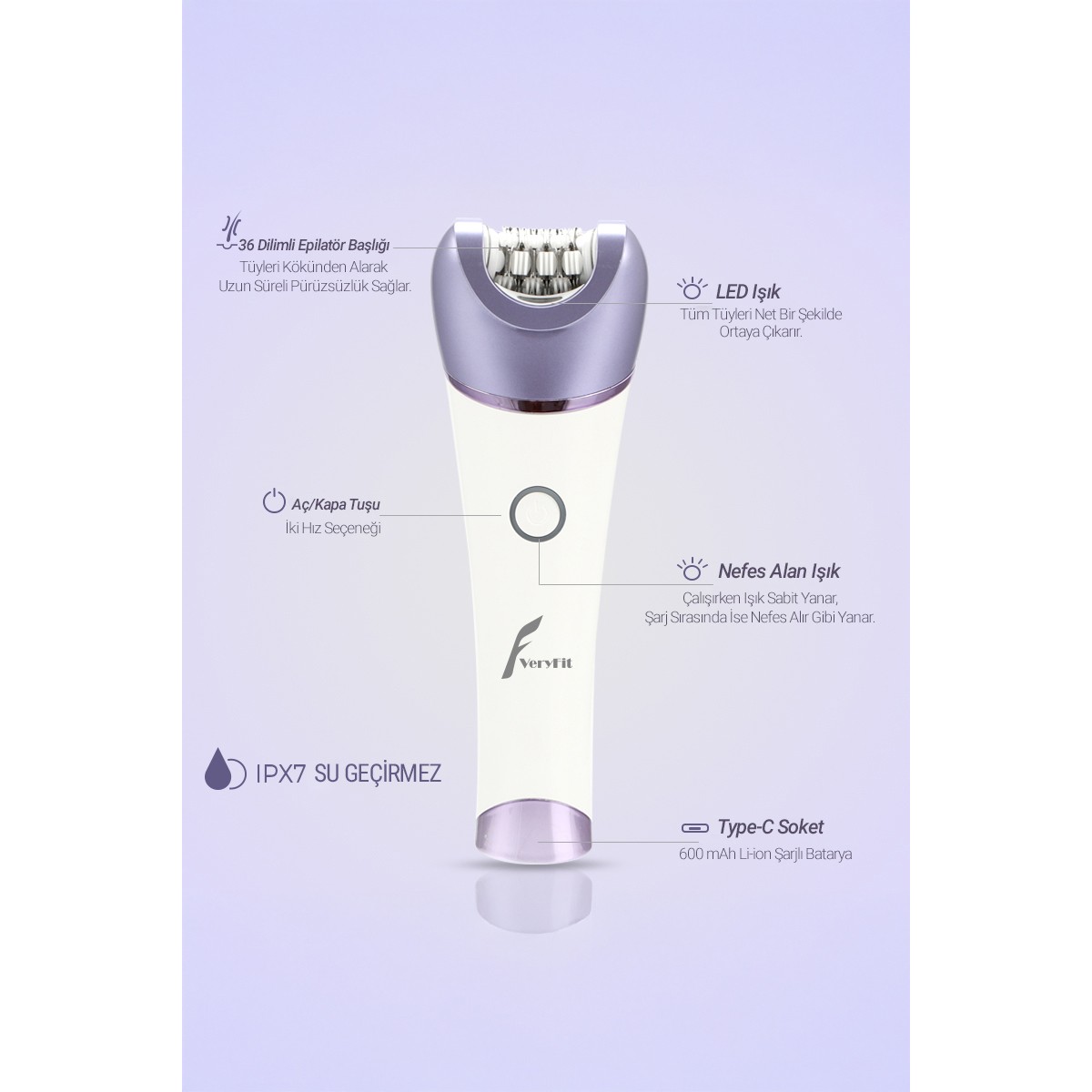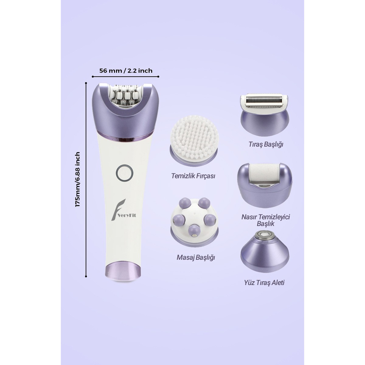 Veryfit 6 Başlıklı Masaj Pedikür Epilatör (Yüz+Koltuk Altı+Bikini Bölgesi+Bacak) Islak Ve Kuru Kablosuz