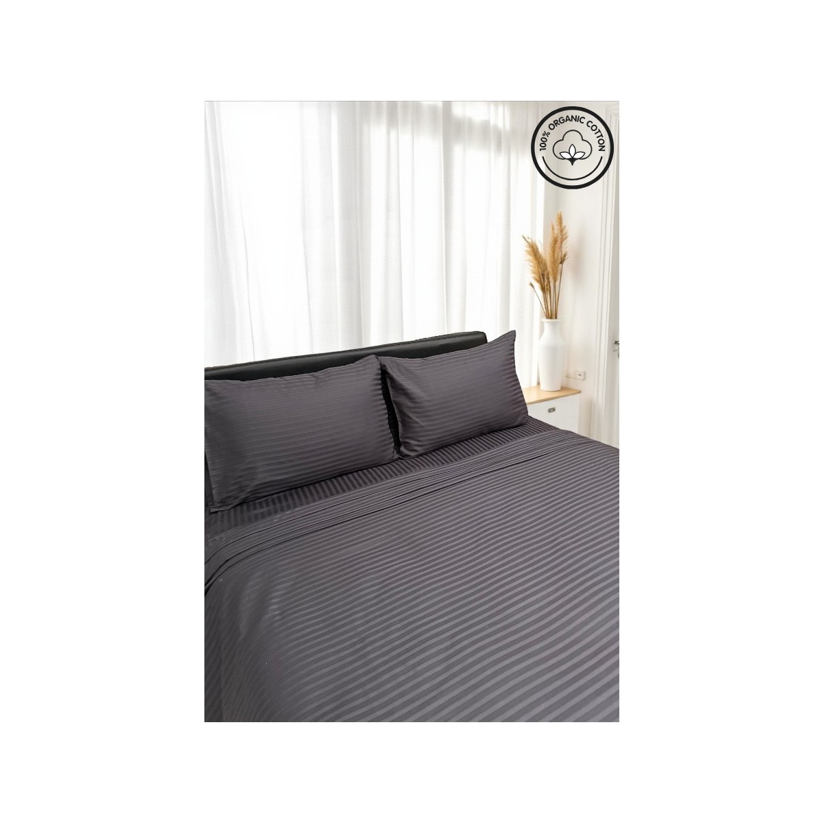 1 cm aralıklı saten çizgili dokusu, sade ama zarif bir görünüm sağlar ve yatak odanızda otel konforunda bir atmosfer oluşturur.