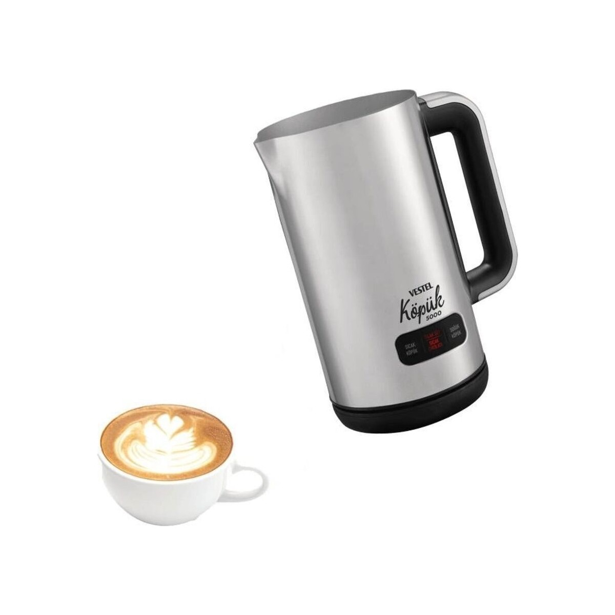 Vestel Köpük 5000 Süt Isıtıcı ve Köpürtücü 0,5 Lt Çelik Gövde, Otomatik Kapanma ve Enerji Tasarruflu Gri Tasarım