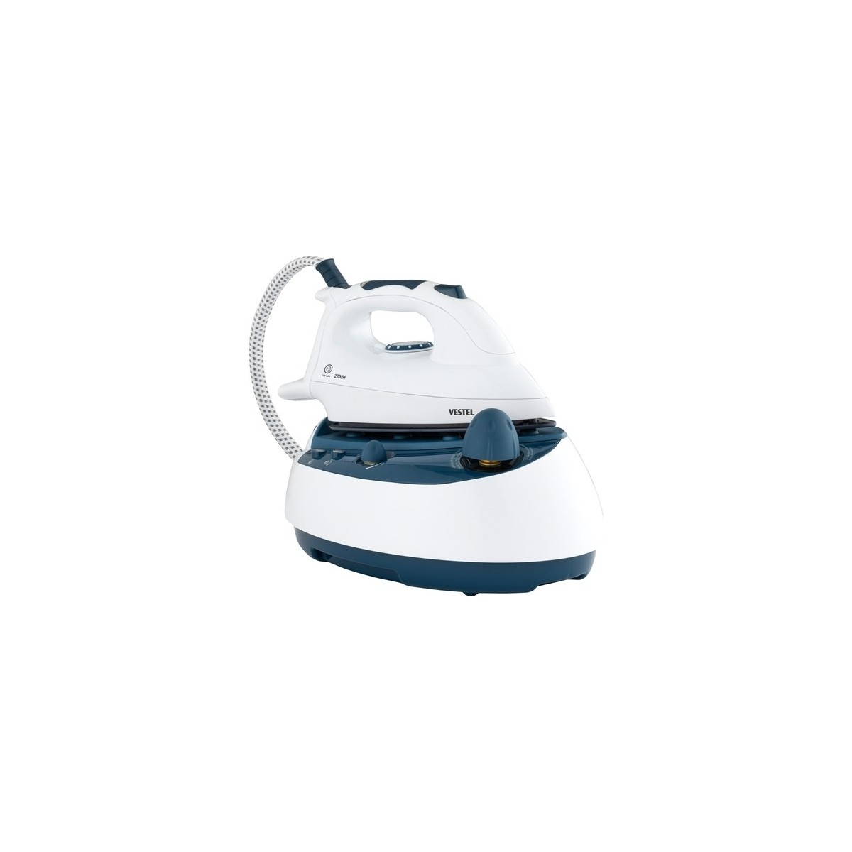 Vestel markasına ait olan buhar jeneratörlü bu ütünün rengi mavi ve beyazdan oluşur. Cihaz bir adet ütüden ve buhar jeneratöründen meydana gelir. Ütüleme işlemi esnasında dakika başına 130 gram buhar ortaya çıkarır. Aynı zamanda kullanım esnasında cihazın basıncı 3 bar değerindedir. Buhar jeneratörünün su kapasitesi 1.1 litredir. Ortalama olarak bir kullanım esnasında kullanılan elektrik miktarı ise 2200 W değerinde olur. Ütünün tabanı yüksek ısıya dayanıklı seramik malzemeden üretilir. Seramik yüzey kırışıklıkları kolay açma performansı sağlarken aynı zamanda kayar özellikte olmasıyla kullanıcılar için kolaylık sunar.