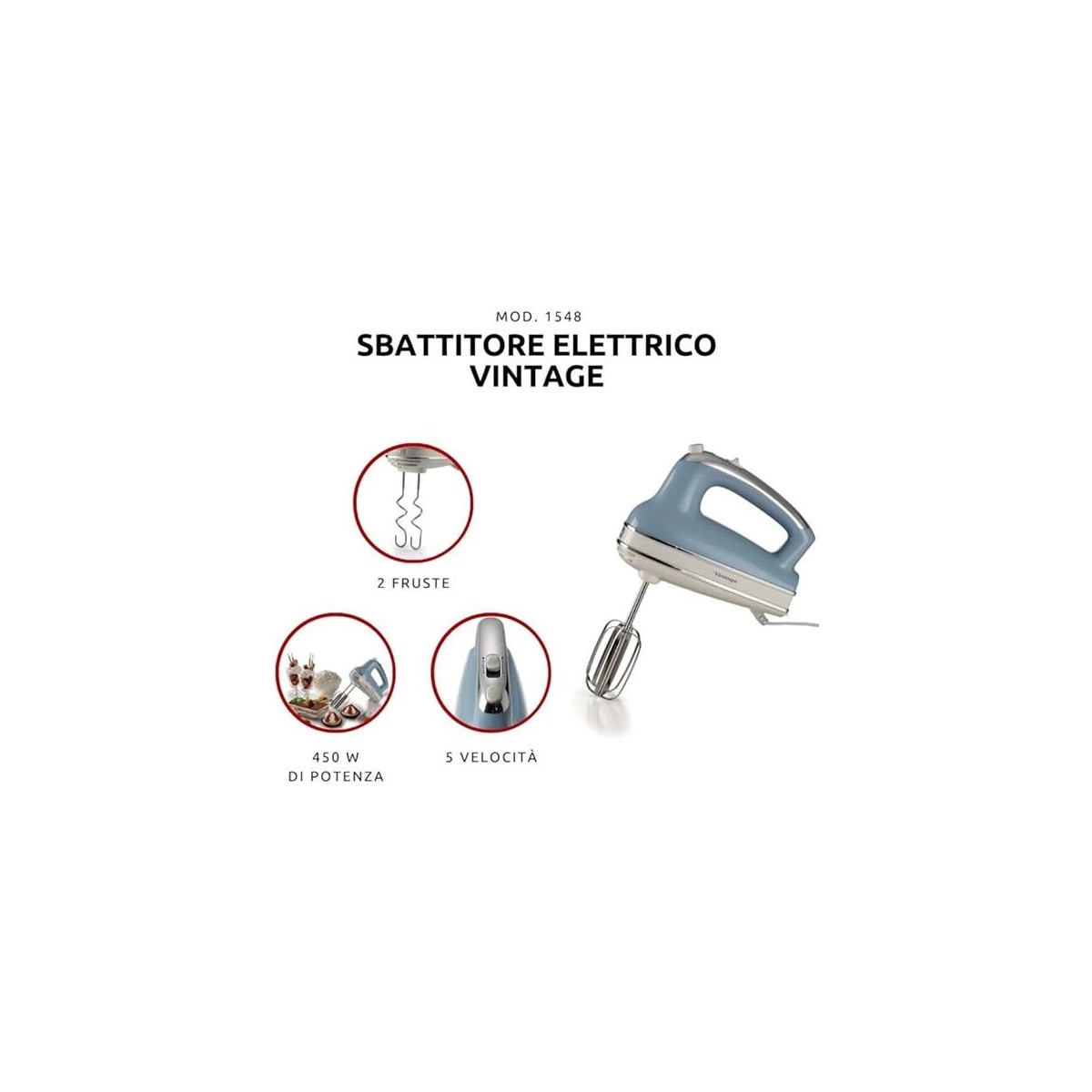 Vintage El Mikseri Mavi 1548/05-450 Watt, 5 Hız, Çırpma ve Yoğurma Başlıkları, Turbo