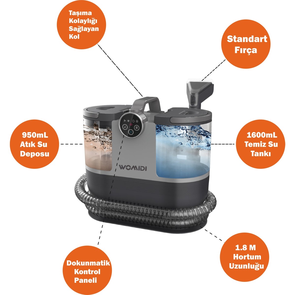 Womidi DY-506F Buhar Fonksiyonlu Dijital Ekran Halı-Koltuk Yıkama ve Leke Çıkartma Makinesi