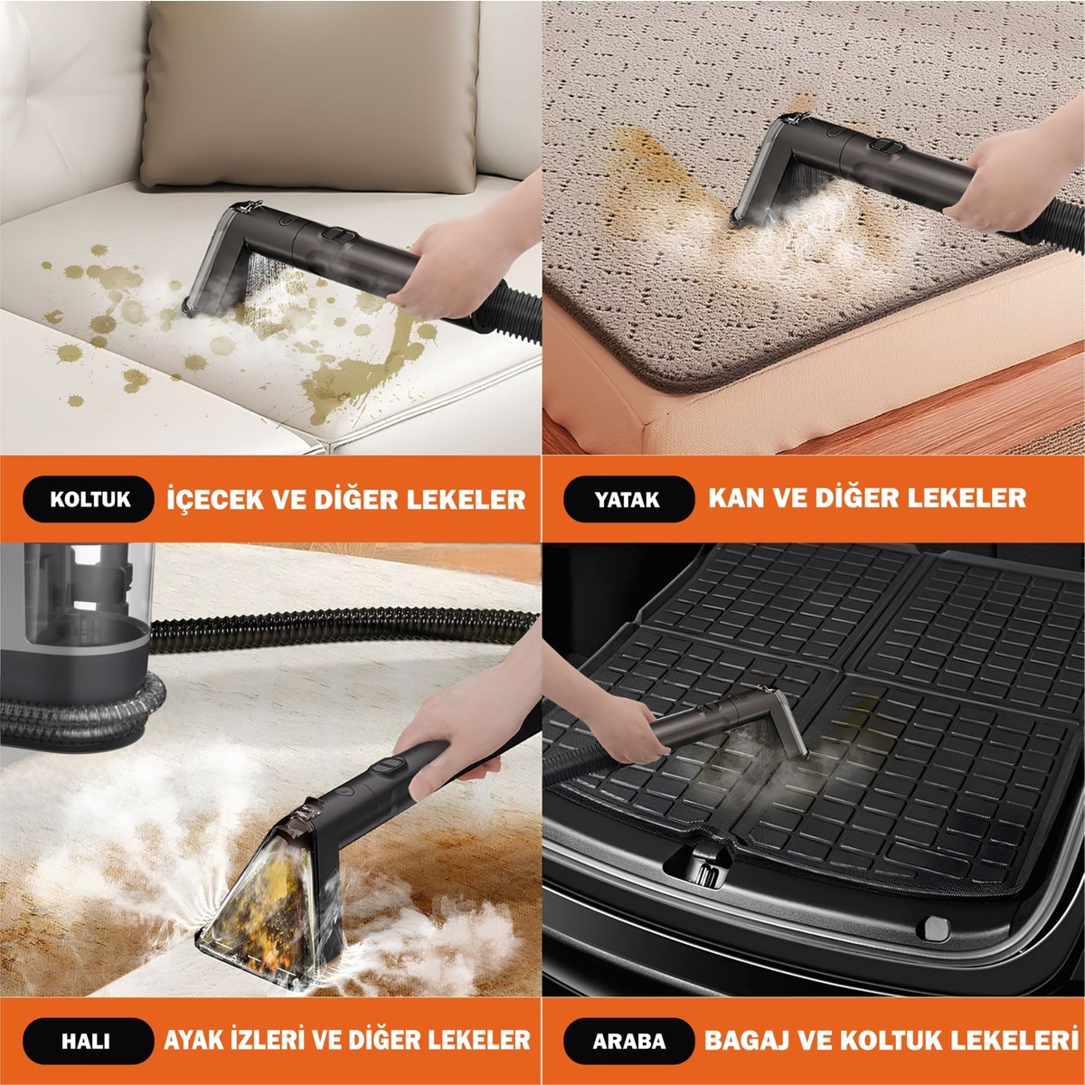 – Etkili temizlik: Buhar teknolojisi sayesinde halılarınızda ve koltuklarınızda derinlemesine temizlik sağlar.