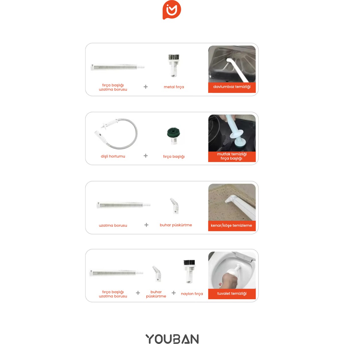 Woodhub Çok Fonksiyonlu Buharlı Temizlik Makinesi Beyaz KF1800