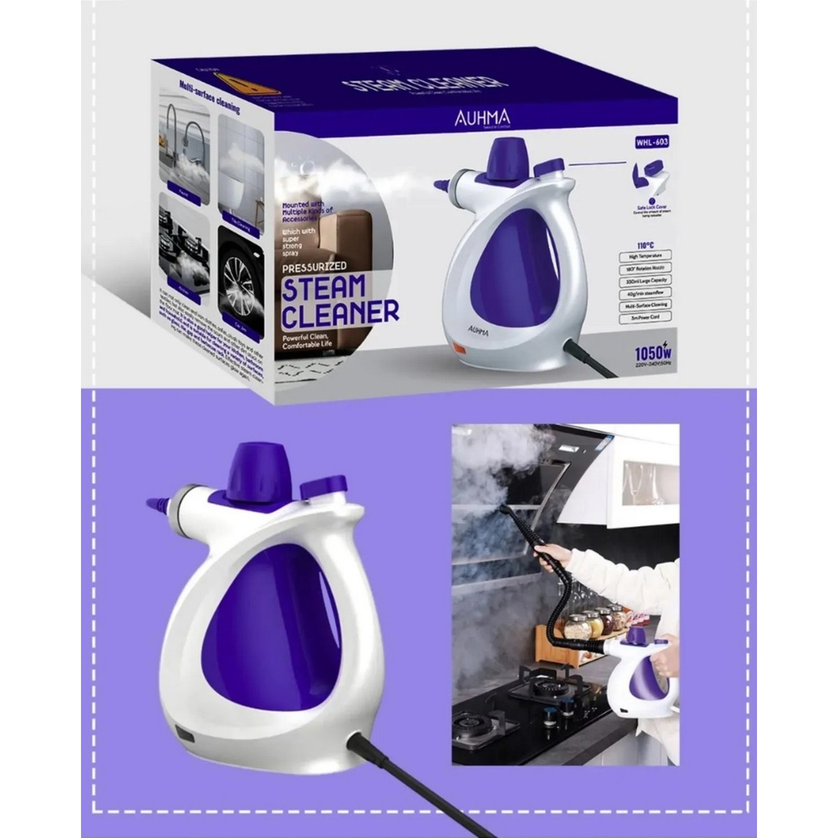 Woodhub Yüksek Basınçlı Buharlı Temizleyici, Çok Amaçlı, Ev ve Araç Yüzeyi Dezenfektör