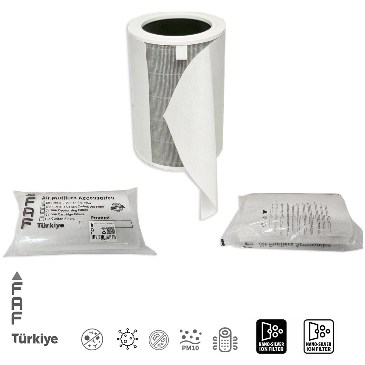10 Adet Smart Air Purifier 4 Lite Nano Gümüş Iyonlu Elekrostatik Toz Tutucu Beyaz Ön Filtre